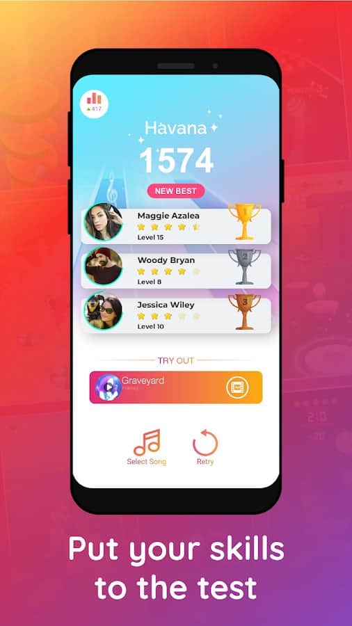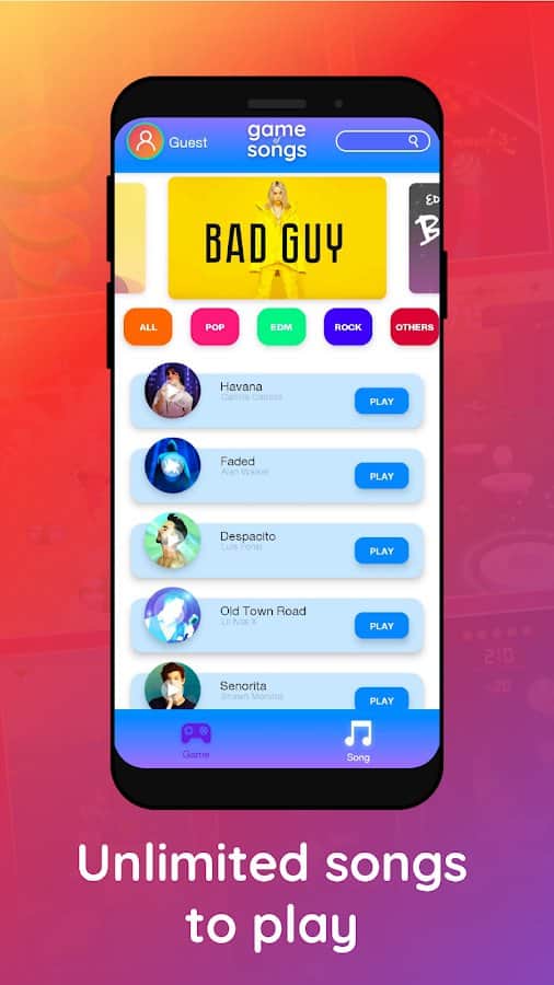 Şarkılar Oyunu – Android için harika bir müzik oyunu, bu türün en iyi oyunlarını bir araya getiriyor. Bu oyunda, bu türü sevenlerin takdir edeceği tüm popüler ve sevilen oyunlar toplandı. Bu oyunu oynayın ve daha önce sahip olmadığınız yeni bir deneyim kazanın. En sevdiğiniz oyunu en iyi oyunlar listesinde seçin ve 1000 şarkı arasından seçeceğiniz müziğe uyum sağlayarak hareket edin. Parmaklarınızın hızına ve mükemmel refleksinize güvenin ve kendi rekorlarınızı kırarak oyunda inanılmaz sonuçlar elde edin. Bu oyunu oynayarak ve en sevdiğiniz şarkıların tadını çıkararak boş zamanınızı eğlenceli bir şekilde geçirin.