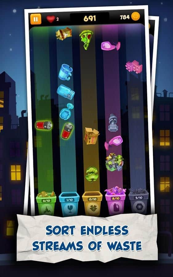 Çöp Kahramanı – çöp ayırma – oldukça titiz ve zor bir süreçtir. Bu süreçte en önemli şey el becerisi ve hızlı tepki vermektir. Sadece bir anlık dikkatsizlikle ve bir kısım çöp dağınık kalabilir, bu da oldukça kötü bir durumdur. Siz, yıldırım gibi hızlı olmalısınız. Çöpü çeşitli türlerine göre ayırın. Her tür çöpü kendi çöp kutusuna gönderin. Hadi gezegenimizi en azından biraz daha temiz hale getirelim. Ne kadar iyi çalışırsanız, yeni aşamalara geçme şansınız o kadar artar. Bu aşamalarda yeni atık türleri açılacaktır. En iyi çöp ayırıcı olmak için yarışmalara katılabilirsiniz.