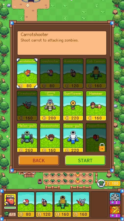 Bahçe Savunma Zombileri Yok Etme - Çiftçiler, ortaya çıkan zombilerin topraklarına saldırmaya ve bahçelerdeki mahsulleri bozmağa çalıştığından endişeliler, bu yüzden Kıyamet'e karşı koymak için bir araya geliyorlar ve savaşmak için silah alıyorlar. Yürüyen ölüler, doğrudan size doğru tek bir patikadan gelecek ve siz de savunma olarak saldırı için sağlam kaleler inşa etmelisiniz. Çiftçilerin tek etkili silahı sebzeleri, çünkü istilaya hazırlıklı değiller. Uygun havuç, yeşil biber, karpuz, durian ve diğer bitkileri hazırlayın ve ardından savaşa başlayın.