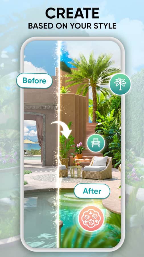 Bahçe Keyfi: Tasarım Oyunu - Sıradan bahçeleri gerçek sanat eserlerine dönüştürün. Onları lüks bitkiler, şık mobilyalar ve benzersiz dekoratif unsurlarla doldurun. Plaj evlerinden dağ chaletlerine kadar evlerin avlularını süsleyin ve düzenli günlük meydan okumalara katılın! Çok oyunculu etkinliklere katılın ve muhteşem buketler yaratma yarışmasına katılın. Görevleri tamamlayarak jeton kazanın ve ödüller kazanın. Mevsimsel etkinlikler, diğer oyuncularla etkileşim kurmanız için yeni fırsatlar sunacak.