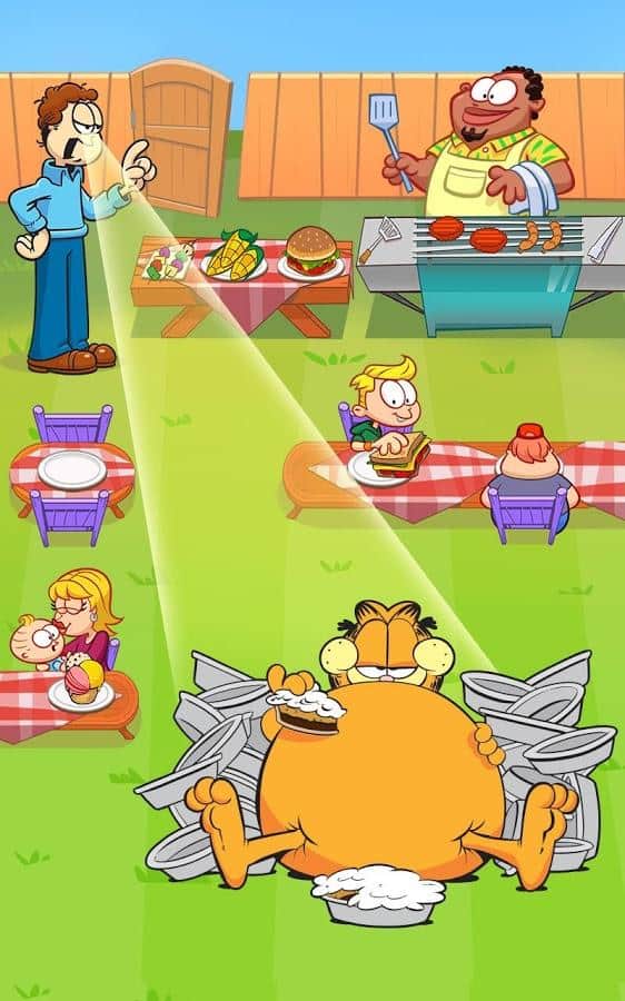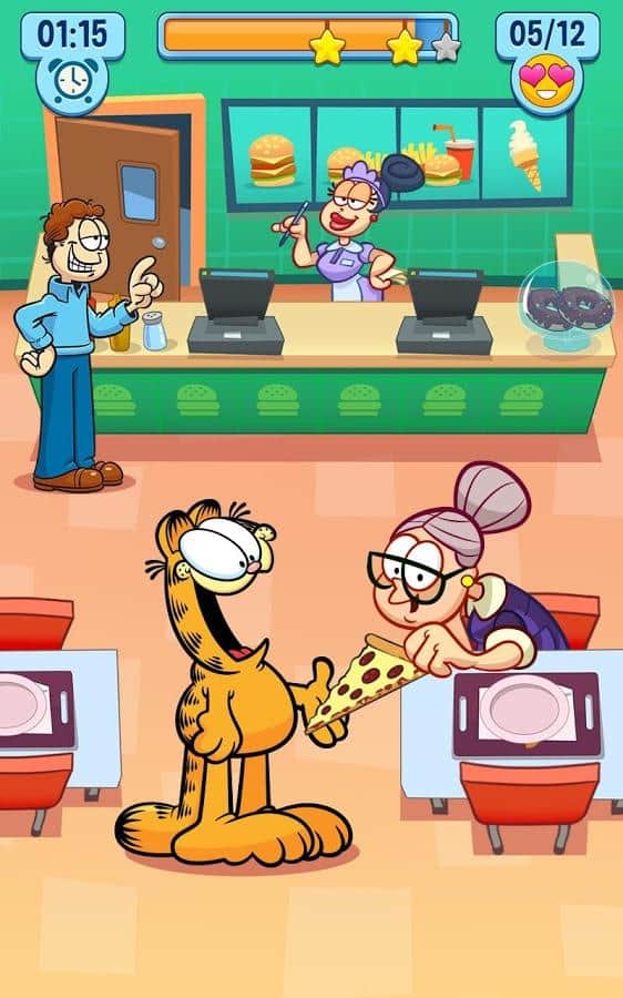 Garfield: Hile Yap ve Ye! – Android için eğlenceli bir oyun, burada Garfield'a restoran, kafe ve pizzacılardaki müşterilerden yiyecek çalmasına yardımcı olacaksınız. Ünlü kedimizin sahibi diyet yapmaya karar verdi ve Garfield'ı çeşitli lezzetlerle beslemeyi bıraktı. Artık kedimiz, dünyanın en şişman kedisi olmaya devam etmek için kafe ziyaretçilerinden birçok atıştırmalık ve yiyecek çalarak onları soyacak. Garfield'a sahibinin ve aşçının gözlerinden saklanmasına ve ziyaretçilerden yiyecekleri gizlice almasına yardım edin. Çaldığınız her yiyecek için puan alacaksınız, bu puanları kahramanınız için çeşitli kostümler satın almakta harcayabilirsiniz. Liderler tablosunda en iyi yerleri kapın ve gözlem yeteneğinizi ve kurnazlığınızı gösterin.