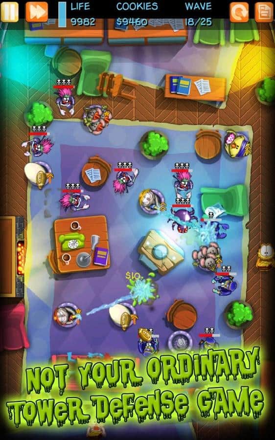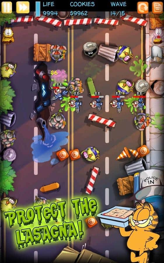 Garfield Zombi Savunması - bu eğlenceli stratejide, çizgi film karakterleriyle birlikte, sevilen kedi Garfield ile birlikte Indiana eyaletini, lazanya fabrikasına yönelik zombi istilasından kurtarabilirsiniz. Lazanya, Garfield'ın en sevdiği atıştırmalık olduğu için, zombi ordusunun atölyenin sınırına girmesine izin vermeyecek. Oyun mekaniği, Tower Defense türünde tasarlanmıştır. Göreviniz, farklı özelliklere sahip savunma kulelerini doğru ve akıllıca yerleştirmektir. Düşmanlar tencere, masa, çöp kutuları ve diğer iç mekan eşyaları arasında garip bir labirentte ilerlerken, onları birer birer yok edebilirsiniz! Renkli animasyonlar ve bonuslar, ayrıca sevilen karakterler her zaman hoşunuza gidecek ve moralinizi yükseltecek!
