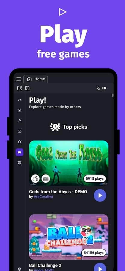 GDevelop - 2D/3D oyun yapımcısı - GDevelop oyun oluşturma aracında sizi karşılıyoruz, bu araç sayesinde programlama bilgisine ihtiyaç duymadan yaratıcı fikirlerinizi hayata geçirme imkanına sahip oluyorsunuz. Uygulama ile kendi oyunlarınızı hızlı, kolay ve ücretsiz bir şekilde oluşturabilirsiniz. Hayalinizdeki oyunu yaratmak için onlarca oyun şablonunu kullanabilir veya boş bir sayfadan başlayabilirsiniz. Karakter nesneleri, animasyonlar, sesler ve müzikler içeren hazır nesne kütüphanesinden seçim yapabilir veya kendi nesnelerinizi yaratabilirsiniz. Uygulama ile oyun nesnelerinize hazır mantıkları hızla ekleyebilir, geliştirme sürecini önemli ölçüde hızlandırabilirsiniz. Steam, Play Store ve daha fazlası gibi popüler platformlarda yayınlanmış pek çok geliştiriciye katılın.