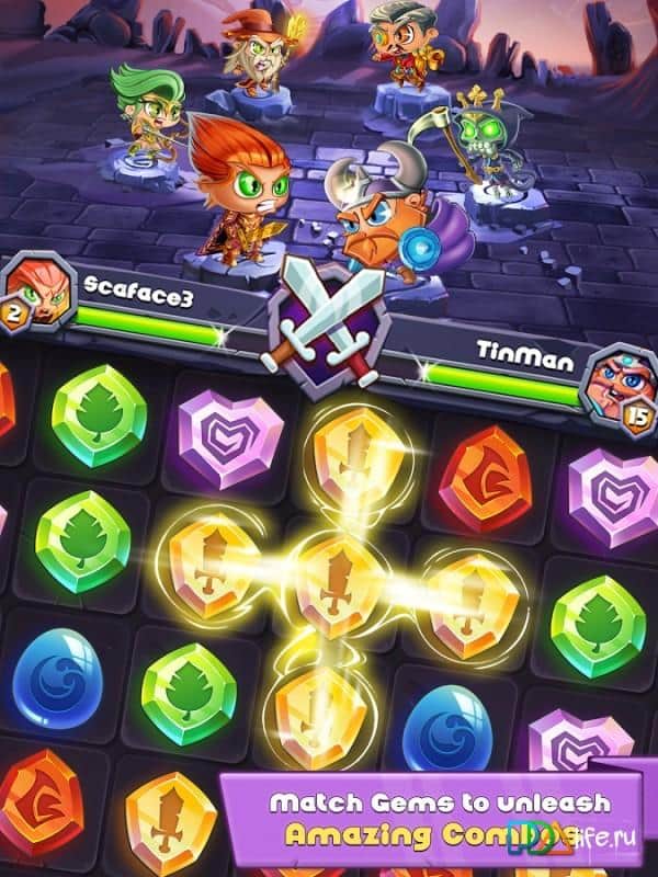 Mücevherler Sınırı – RPG unsurları içeren üçlü eşleştirme türünde bir Android oyunu. Bu oyunda cesur bir kahraman ekibine düşmanlarla savaşmaları için yardım edeceksiniz. Üç veya daha fazla aynı renkten değerli taşı bir araya getirin ve patlatın, böylece savaşçılara saldırmaları için enerji verin. Farklı yetenekler ve saldırılara sahip savaşçılardan oluşan yenilmez ekibinizi oluşturun. Renkli değerli taşlardan oluşan sıralar toplayın, her renk, aynı renkteki kahramanların saldırılarını temsil eder. Oyun ilerledikçe ekibinizi güçlendirin ve diğer oyuncularla savaşmak için daha güçlü hale getirin. Eğlenceli oyun deneyiminin tadını çıkarın ve liderler tablosunun en üstüne yükselin.