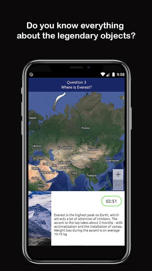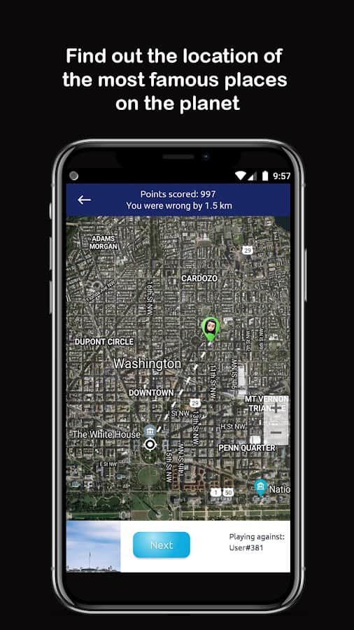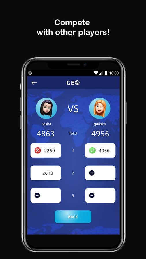 Geo! Dünyanın Bilinen Yerleri - Dünyanın bilinen yerlerini öğrenmek ve mekanda ne kadar iyi yöneldiğinizi kontrol etmek için coğrafya çevrimiçi quiz moduna geçin. Doğru cevap sayısı için diğer oyuncularla yarışın, ancak her zaman zamanın ve kalan süreyi dikkatle izleyin, çünkü soruları cevaplamak için yetişememe ihtimali oldukça yüksektir. Yeteneklerinizi kontrol edin, coğrafyayı ne kadar iyi bildiğinizi görün, eğer bilmiyorsanız, uygulama içinde faydalı bilgiler edinin! Sadece yerlerin kesin konumlarını değil, aynı zamanda fotoğraflarını da görüntüleyin.