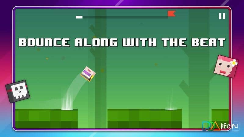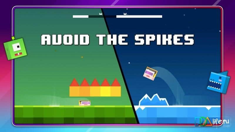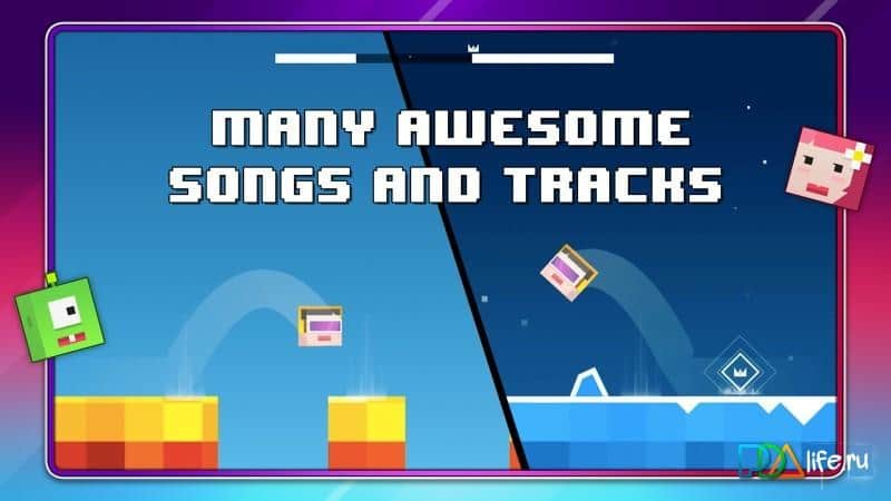 Geometri Cehennemi: Ritme Uyarak Zıpla ve Koş – küplü kahramanı kontrol edin ve müzik parçaları eşliğinde onu ileri götürün. Bu müzik oyununda, kahramanın hareketlerini telefon ekranına bir parmağınızla dokunarak kontrol etmeniz gerekiyor. Parkurun ölçülerine dikkat edin ve engelin üzerinden atlamak veya altından kaymak için doğru anda ekrana dokunun. Kahramanın çeşitli nesnelerle çarpışmasını önlemek için son derece dikkatli olun. Mümkün olan en uzun mesafeyi kat edin ve bu eğlenceli oyunda kendi rekorunuzu kırın.