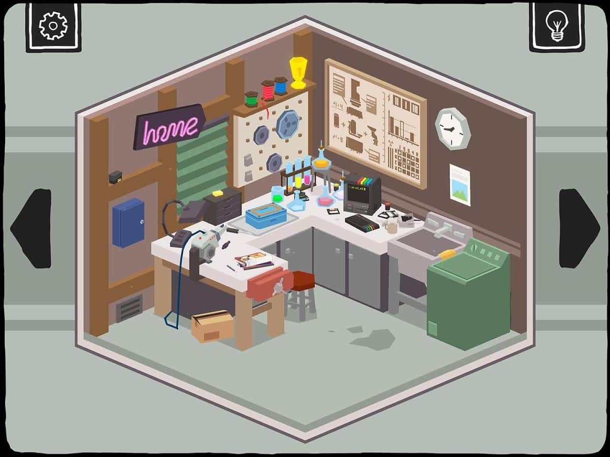 Get aCC_e55 – Android için ilgi çekici bir bulmaca, zaman makinesini tamir edeceksiniz. Bir açık artırmada, "Geleceğe Dönüş" filmindeki ünlü makinenin bir kopyası olan zaman makinesini satın aldınız. Ancak, motoru tamir etmeniz gerektiği için onu çalıştırmakta zorlanıyorsunuz. Oyunda yakın bir gelecekte – siberpunk bir dünyada, yerel bir geek olacaksınız. Ne bir bilim insanı ne de dahi olan yetenekli bir mucit, jet motorunu tamir etme yeteneğine sahip. Barın yanındaki atölyeye gidin ve makineyi toplamaya çalışın. Motoru bir araya getirmeye ve makinenin diğer küçük arızalarını düzeltmeye çalışarak bulmaca görevlerini çözün. Odayı farklı yönlere döndürün ve çeşitli görevleri çözün.