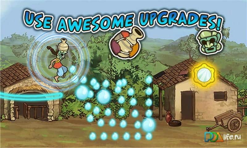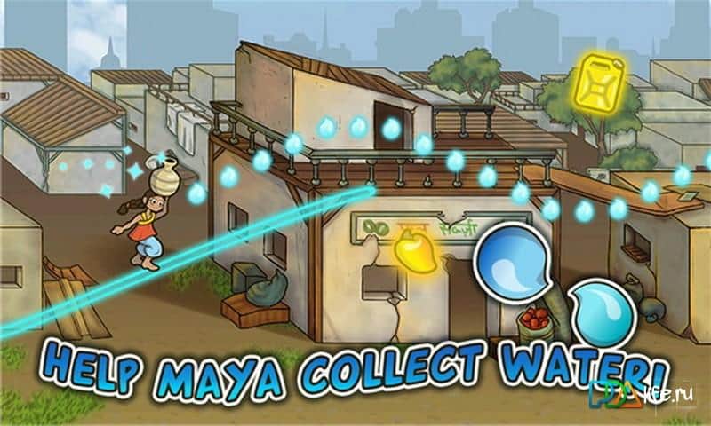 Su Al! - Windows phone için heyecan verici bir oyun, burada Hindistanlı Maya'ya tüm suyu toplamasında yardımcı olmanız gerekiyor. Onun köyünde tüm su bitmiş durumda ve şimdi kahramanımızın ailesi için su bulmak üzere okuldan çıkması gerekiyor. Yerin üstünde uçun ve değerli su damlalarını toplayın, ayrıca uçan kuşlardan kaçının ve onları bumeranglar kullanarak savuşturun. Bu oyun, temiz suyun değerini anlamanızı sağlayacak ve üçüncü dünya ülkelerinde ne kadar gerekli olduğunu gösterecek.