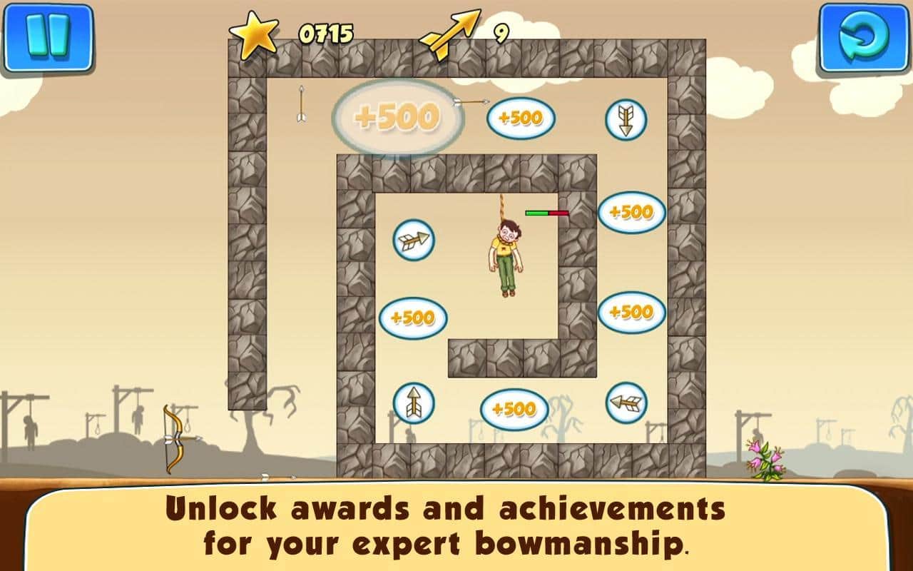 Gibbets 2 - Android için heyecan verici bir oyun, burada asılı insanları kurtarmanız gerekiyor. İp üzerinde sallanarak ve ölüm hakkında düşünerek onların son şansı sizsiniz. Yayınızı ustalıkla kullanarak, ipleri koparmak için oku atmalısınız ve böylece asılı insanların hayatlarını kurtarmalısınız, toplamda 50 seviyede. Gerçek bir ustalık, tek bir okla birden fazla ipi kesmek olarak kabul edilebilir. Oyunda, yırtıcılara ateş etmeniz gereken bonus seviyeleri de bulunmaktadır.