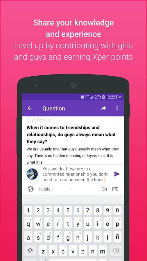 GirlsAskGuys uygulaması, erkeklerin ve kadınların farklı konularda iletişim kurmalarını, anketler oluşturmalarını ve çeşitli konularda merak ettikleri soruları sormalarını sağlar.
