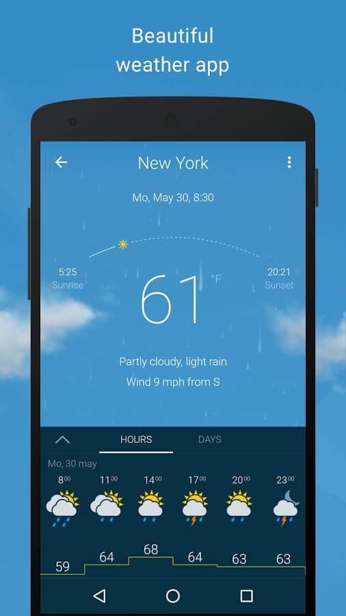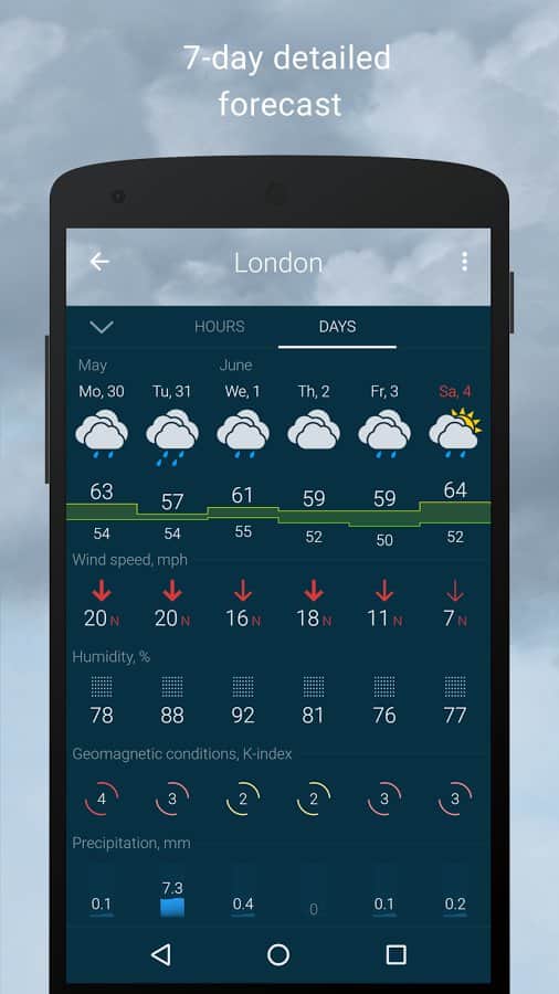 Gismeteo - Kesin hava durumu tahmini her zaman elinizin altında olacak, eğer bu uygulamayı yüklerseniz. Bu uygulama sadece basit değil, aynı zamanda onu en iyi yapan birçok faydalı özellik ve ek ile doludur. Seçtiğiniz noktaların hava durumu tahminlerini veya dünya genelindeki hava durumunu görüntüleyebilirsiniz; hava durumunu hem gün boyunca hem de saat saat görebilirsiniz. Basit ve kullanışlı arayüzü ve widget'ın varlığı da oldukça sevindirici.