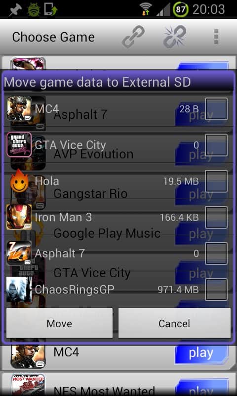 - Veri klasörünü /sdcard/gameloft/games harici SD karta taşıyın (örneğin /sdcard/gameloft/games/asphalt6/ --> harici /external_sd/games/asphalt6/)