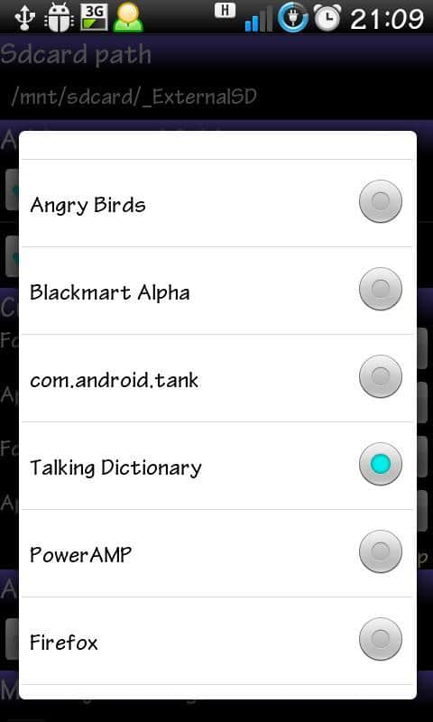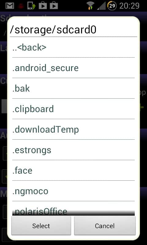 - Eğer /sdcard/Android/data klasörlerini taşıdıysanız, Menüye tıklayın ve "/sdcard/Android" seçeneğini işaretleyin, ardından 'Ekle'ye tıklayın ve programı yeniden başlatın.