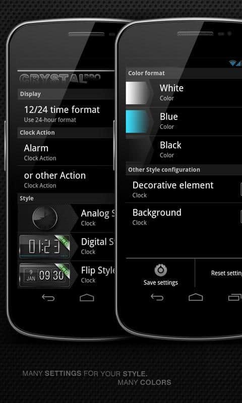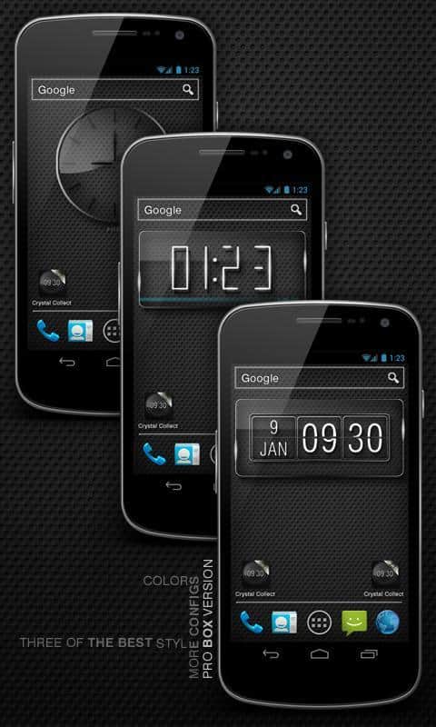Cam saat – kristal berraklığında saatlerden oluşan Android cihazlar için şık bir widget. Cam saati indirin ve size bir analog ve iki dijital saat sunulacak. Ayarlarda görüntüleme seçenekleri mevcut, renkleri ve stilleri (dijital, analog, Flip) değiştirerek özelleştirebilirsiniz; ayrıca uygulamanın başlatılmasını, alarm ayarını, takvimi, medya, tarayıcı ve daha fazlasını programlayabilirsiniz!