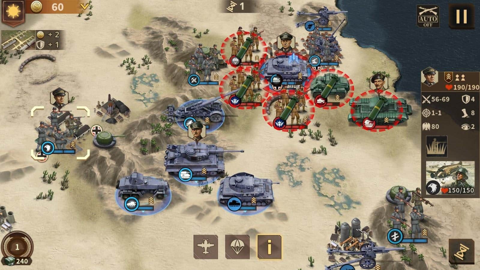 Generallerin Şerefi 3 - İkinci Dünya Savaşı Strateji Oyunu - İkinci Dünya Savaşı zamanında geçen stratejik bir savaş oyunu. Farklı bölgeleri fethedin: Polonya, Japonya, İngiltere, ABD, Romanya, Moldova, Hollanda ve dünyanın baş yöneticisi olun. Güçlü silahlar satın alın: tanklar, roketler, gemiler, uçaklar, havan topları veya güçlü bir ordu oluşturun. Görevleri tamamlayın, haritayı ve arazisini (ormanlar, çöl, okyanuslar, buzullar, ormanlar...) keşfedin, 60'tan fazla general (Jukov, Guderian, Manstein, Barton...) ile oynayın ve düşmanları yenin! Her hamle (saldırı) tüm savaşı değiştirebilir, bu yüzden kararlarınızı dikkatlice düşünün.