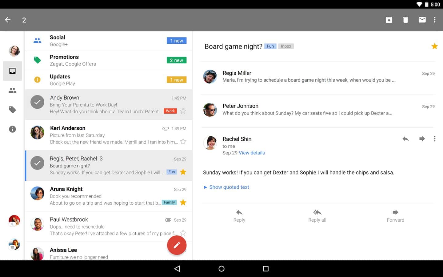 Gmail – tüm Google kullanıcılarına iyi bilinen bir e-posta istemcisi, artık Android için de mevcut, Google Inc.'in en iyi geliştiricisi sayesinde. Birden fazla hesabı yönetme imkanı, etiketler üzerinden bildirimleri ayarlama, ekli dosyaları görüntüleme ve kaydetme gibi birçok özellik bulunmaktadır.