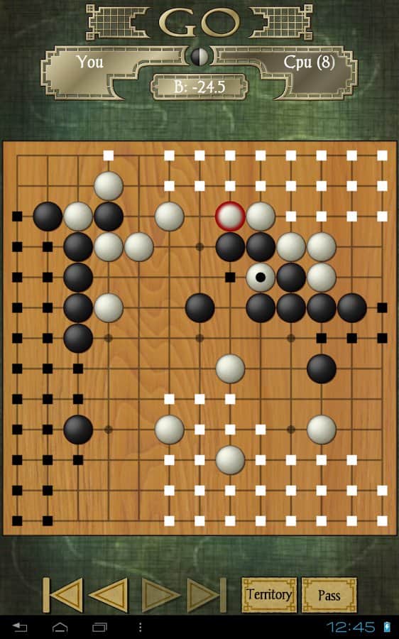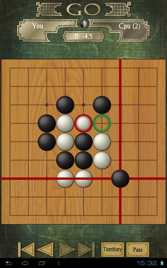 Go – Android için bir mantık oyunu, Asya'dan bize geldi. Bu oyunda önünüzde bir alan olacak, bu alanda taşlarınızı yerleştirerek rakibinizden daha fazla alan ele geçirmeye çalışmalısınız. Her oyuncuya bir hamle verilir, bu hamlede yalnızca bir taş oyun tahtasına yerleştirilebilir ve bu taş, tahtayı çizmek için kullanılan çizgilerin kesişiminde yer almalıdır. Her hamlenizi dikkatlice düşünün ve rakibinizin taşlarını tahtadan çıkararak daha fazla alan ele geçirin, böylece ona karşı büyük bir avantaj elde edin. Oyunda birkaç çeşit oyun tahtası, farklı zorluk seviyeleri ve birçok ipucu ve bonus bulunmaktadır.