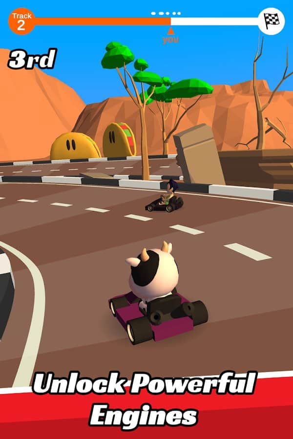 Go Kart Yarışı! – Android için arcade yarış oyunu, burada dairesel pistlerde yarışacaksınız. Bu oyunda bir go-kartı yöneterek birçok rakibinizi geçip hedefe birinci ulaşmaya çalışacaksınız. Go-kartı yönetin ve pistte hızla ilerleyerek bonusları ve güçlendirmeleri toplamayı unutmayın. Yolda karşınıza çıkan tüm engelleri aşın ve rakiplerinize çeşitli nesnelerle saldırın. Yeni haritalar ve sevimli karakterler keşfedin, ayrıca onları kendi zevkinize göre özelleştirin. Liderlik tablosunda daha üst sıralara çıkın ve harika sonuçlar elde edin.