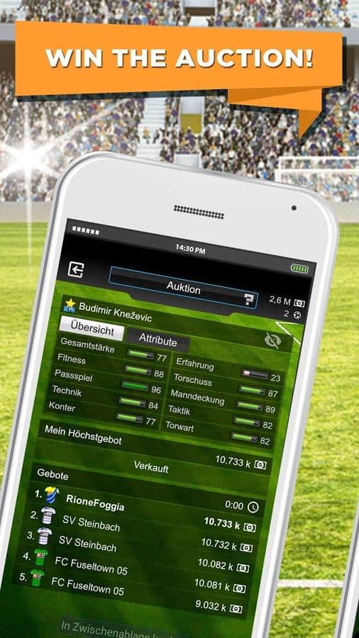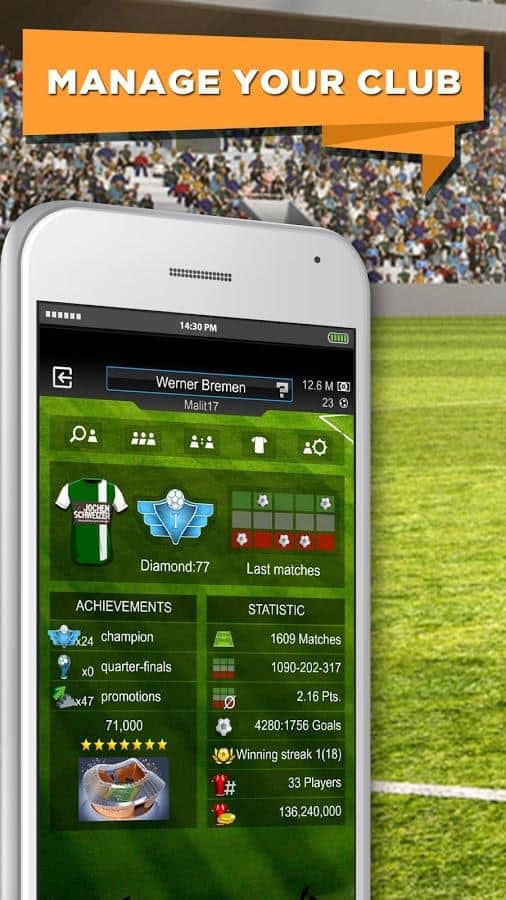 GOAL 2014 - Futbol Menajeri - Android için çevrimiçi bir başka futbol menajeri. Büyük bir oyuncu kitlesine katılın, takımınızı oluşturun, liglere ve şampiyonalara katılın ve kazanın! Menajer, oyuncular için maksimum verimlilikle hazırlanmıştır - her şey en ince ayrıntısına kadar düşünülmüştür. Geliştiricinin iddiasına göre, oyun tamamen ücretsizdir ve ek yatırımlar gerektirmez.