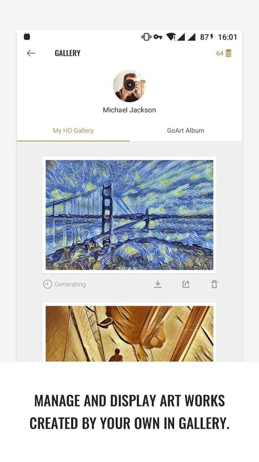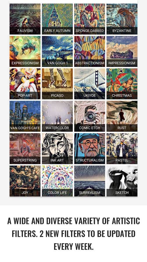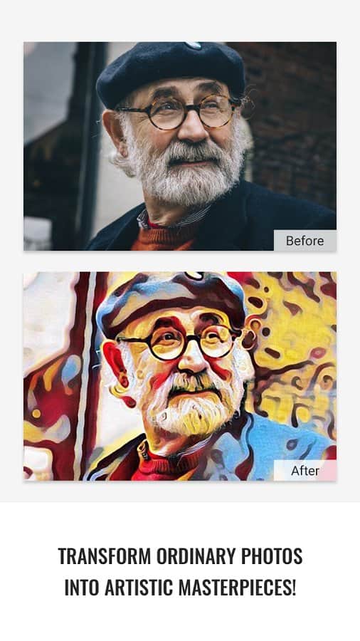 GoArt - İyi ve kaliteli fotoğraflar için ne gerekir? İyi bir kamera ve birkaç fotoğrafçı becerisi, ancak bazen fotoğraflarımızı gerçek bir sanat eserine dönüştürmek isteriz ve bu fırsat her zaman karşımıza çıkmaz. Bu uygulama, hem profesyonel fotoğrafçılar hem de amatörler için yardımcı olacak ve fotoğraflarınızdan çeşitli sanatçıların gerçek başyapıtlarını yaratacaktır. Karmaşık bir algoritma ile çalışır, ancak kullanıcı için her şeyi basit ve anlaşılır bir arayüze dönüştürür, bu yüzden tek yapmanız gereken fotoğrafı yüklemek ve hangi sanatçının tarzında işlenmesini istediğinizi seçmektir.