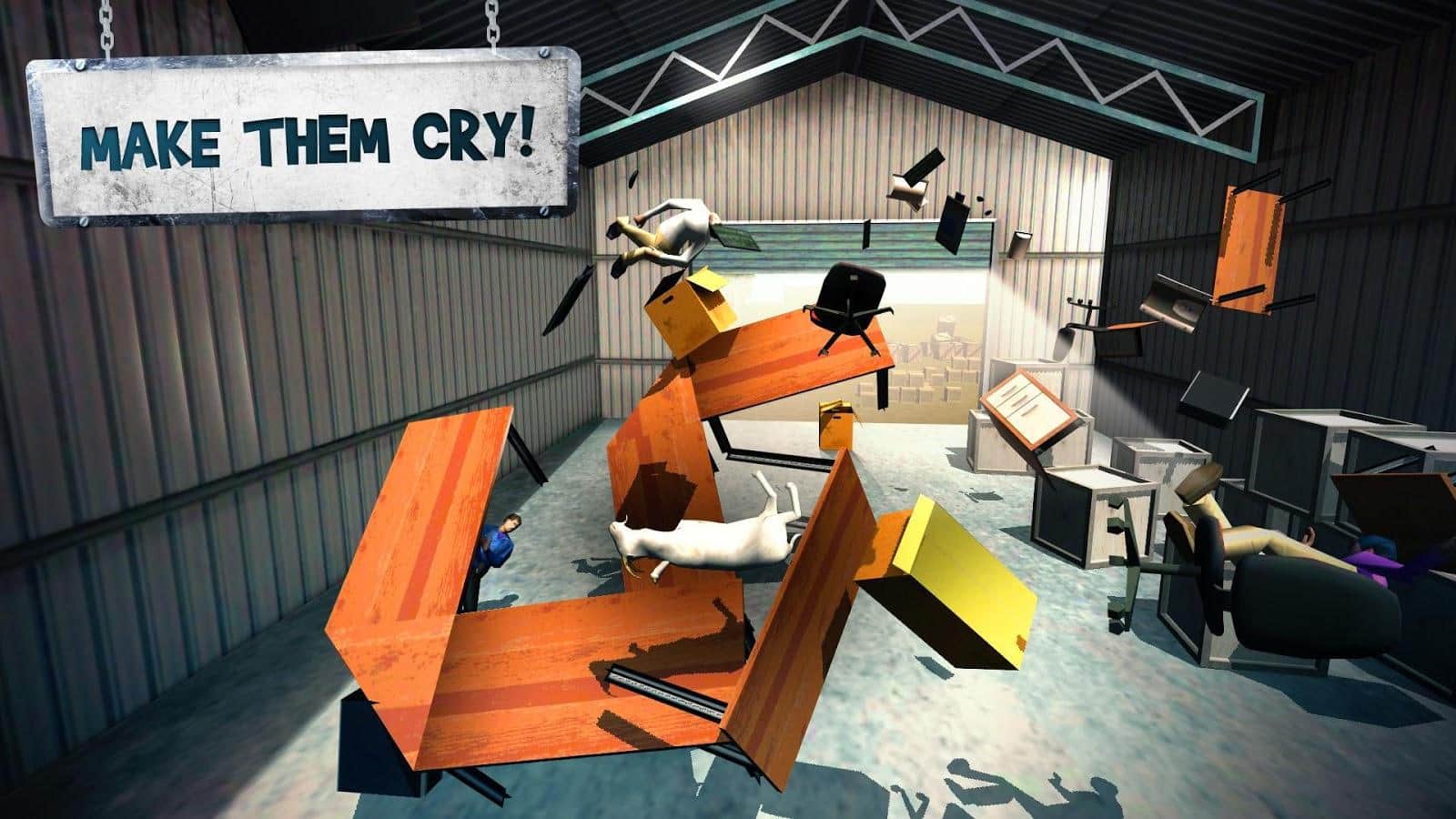 Keçi Kargaşası - Bu hayvanla birkaç oyun çıkarmış bir geliştiriciden Android için bir başka keçi simülatörü. Geliştirici oyuna daha fazla çeşitlilik katıyor. Bu bölümde, sadece mekanlarda koşmanın yanı sıra, etrafı silip süpüren bir jip ile de gidebilirsiniz. Oyun oldukça iyi bir üç boyutlu grafiğe sahip, ancak birçok cihazda çalışacak kadar basit. Ayrıca oyuncuyu gezineceğiniz mekanların boyutları da şaşırtabilir.