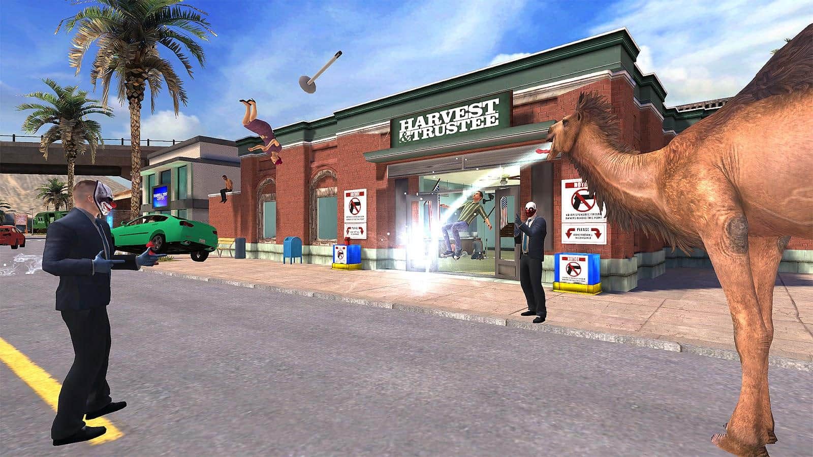 Keçi Simülatörü Soygun – hırsız çetesiyle birlikte hayvanat bahçesinden kaçacağınız harika bir android oyunu. Bu oyunda pembe flamingoyu, tekerlekli sandalyedeki yunusu, su tüküren deveyi ve keçiyi kontrol edeceksiniz. Bu oyundaki ana göreviniz hayvanat bahçesinden kaçmak ve bankayı soymak olacak. Banka baskınınızı planlayın ve çaldığınız paraları kahramanlar için yeni maskeler almakta harcayın, böylece polis sizi tanımasın. Bu oyundaki her kahramanın kendine özgü yetenekleri var; örneğin: flamingo uçabilir ve insanların zihinlerini kontrol edebilir, yunus herhangi bir yüzeye tekerlekli sandalye ile çıkabilir, ve deve su tükürebilir. Maskeler satın alın, pahalı arabaları çalın ve polisten kaçın.