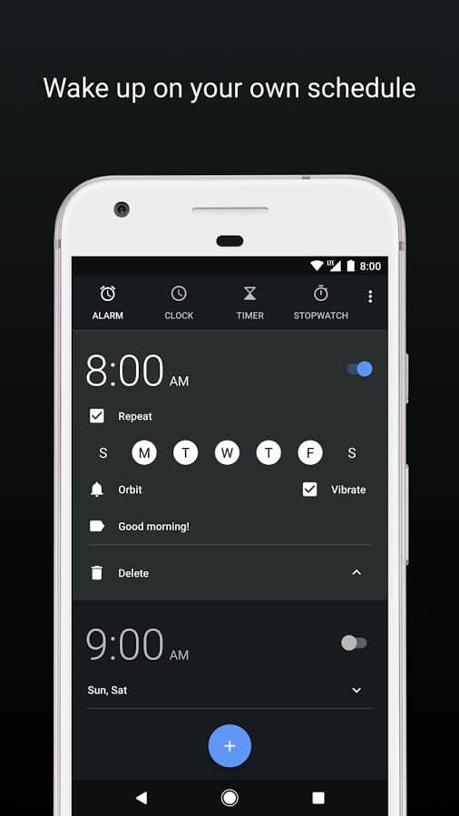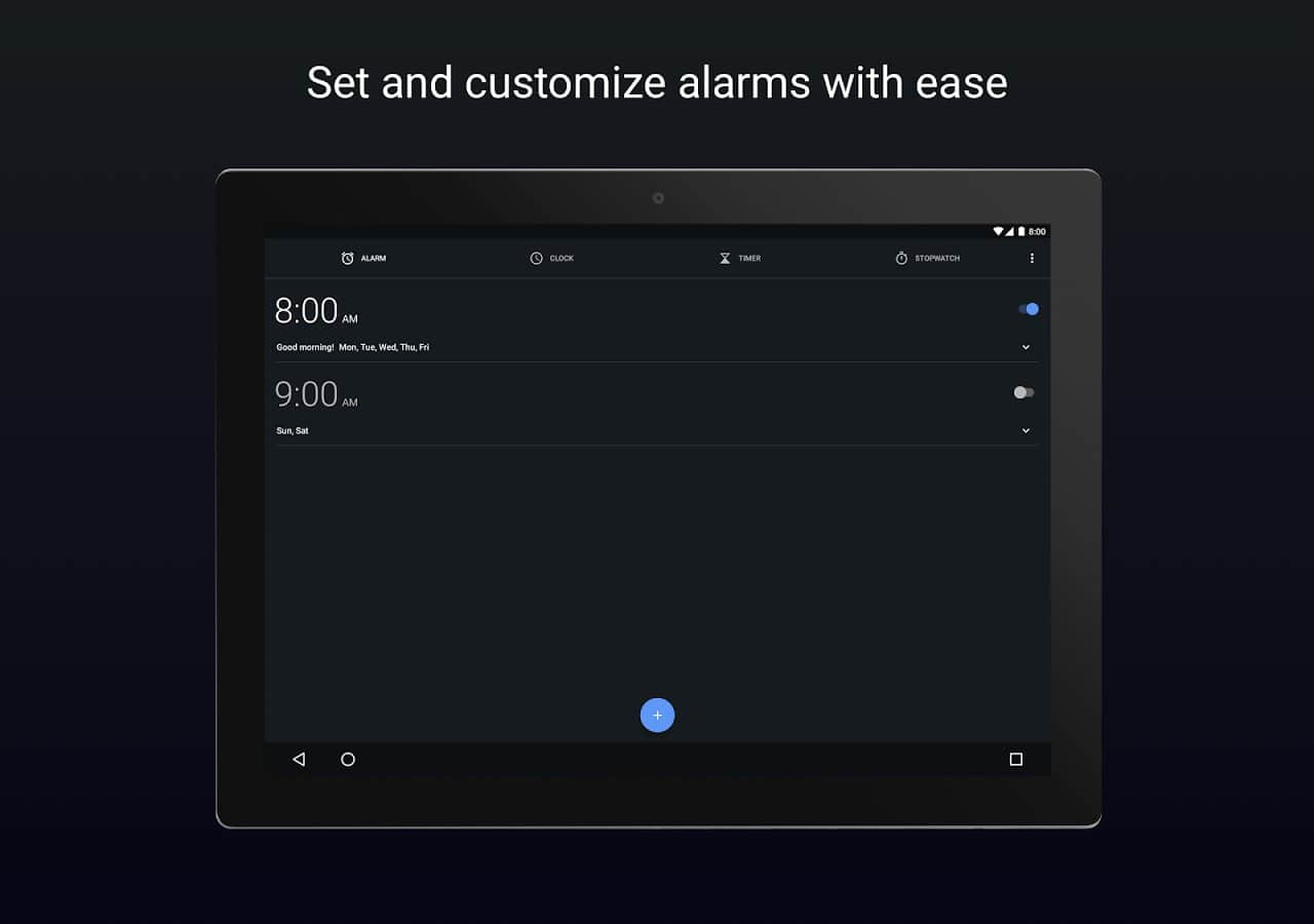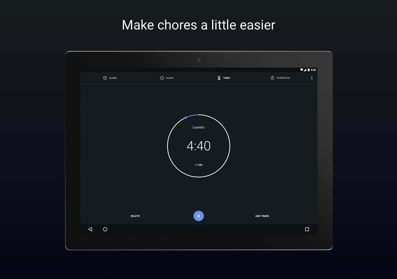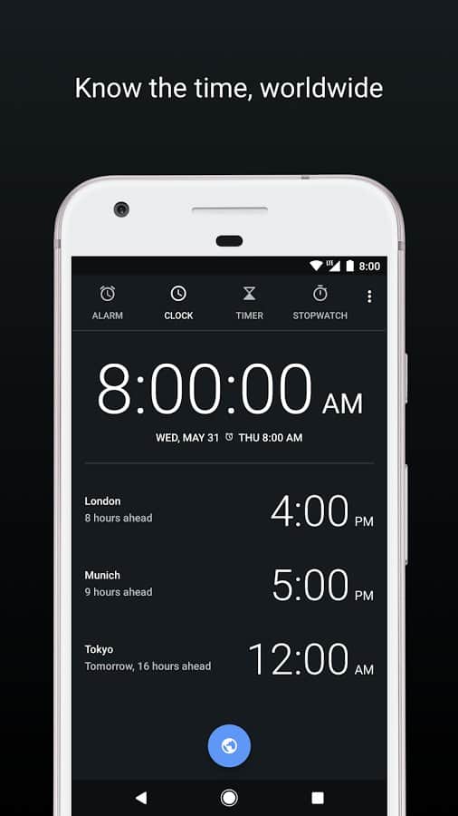 Uygulama dört sekmeye ayrılmıştır: alarm, saat, kronometre ve zamanlayıcı. Diğer özellikler arasında, ses seviyesinin artan şekilde yükselmesi ve sizin için önemli olan şehirleri dünya saati sekmesine ekleme imkanı ilginçtir.