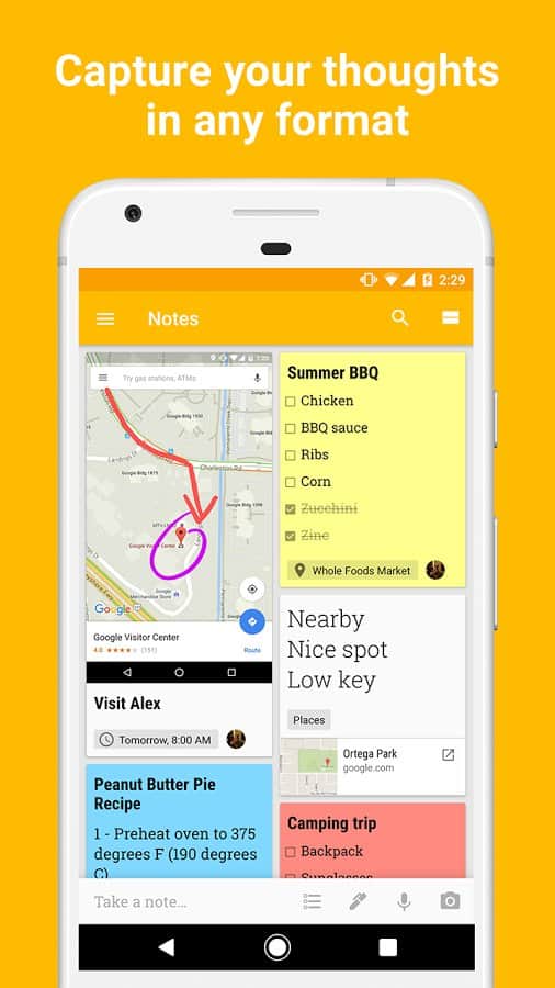 Google'ın not alma uygulaması, sadeliği ve çok yönlülüğü nedeniyle kullanıcılar tarafından sevilmektedir. Son derece basit bir tasarım, uygulamanın her türlü görevi kolayca yerine getirmesine engel olmaz: sesli ve fotoğraf notları oluşturma, eğer yine de metin notu gerekiyorsa, onu da sesli girebilirsiniz, listeler oluşturma, temaları renklere göre ayırma veya etiketler kullanma, eski kayıtları arşivleme. Ve tatlı bir bonus: notlarınızı e-posta ile paylaşma ve farklı hesaplarla ortak notlar tutma imkanı. Ve tabii ki, her kayda belirli bir zamanda hatırlatıcı bağlayabilirsiniz.