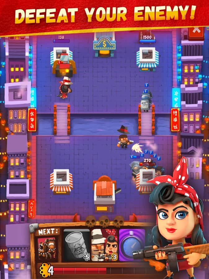 Goon Squad - Herkesin bildiği Clash Royale'e çok benzeyen harika bir kart stratejisi. Bu oyunda, mafya babası olma hayaliyle küçük bir suçlu olarak yolunuza başlıyorsunuz ve en korkunç ve kanlı mafya patronu olma unvanını kazanıyorsunuz. Ancak saygı kazanmak için şehrin bölgelerini ele geçirmeniz gerekir. Gerçek oyuncularla savaşın ve suç kariyerinizde yükselin.