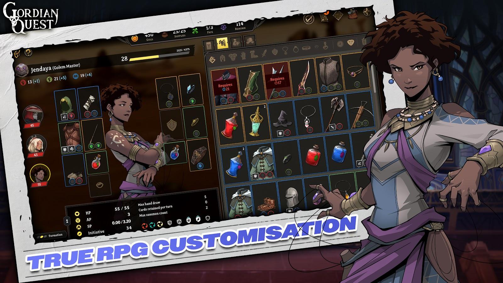 Gordian Quest, oyuncuların her birinin benzersiz kartlara ve yeteneklere sahip kahramanlar topladığı, kart stratejisi unsurlarına sahip bir rol yapma oyunudur. Oyun, karanlık zindanları keşfetmeyi, düşmanlarla savaşmayı ve yeni kartlar ve yükseltmeler açarak karakterleri geliştirmeyi içerir. Savaşlar, kart seçiminin taktiksel bir şekilde yapılmasına dayanır, bu da her dövüşü benzersiz kılar. Oyunun hikayesi farklı yollar sunarak tekrar oynanabilirlik ve çeşitlilik ekler. Genel olarak, Gordian Quest, derin ve düşünceli bir oynanışa sahip fantezi rol yapma ve kart unsurlarının keyifli bir karışımıdır.