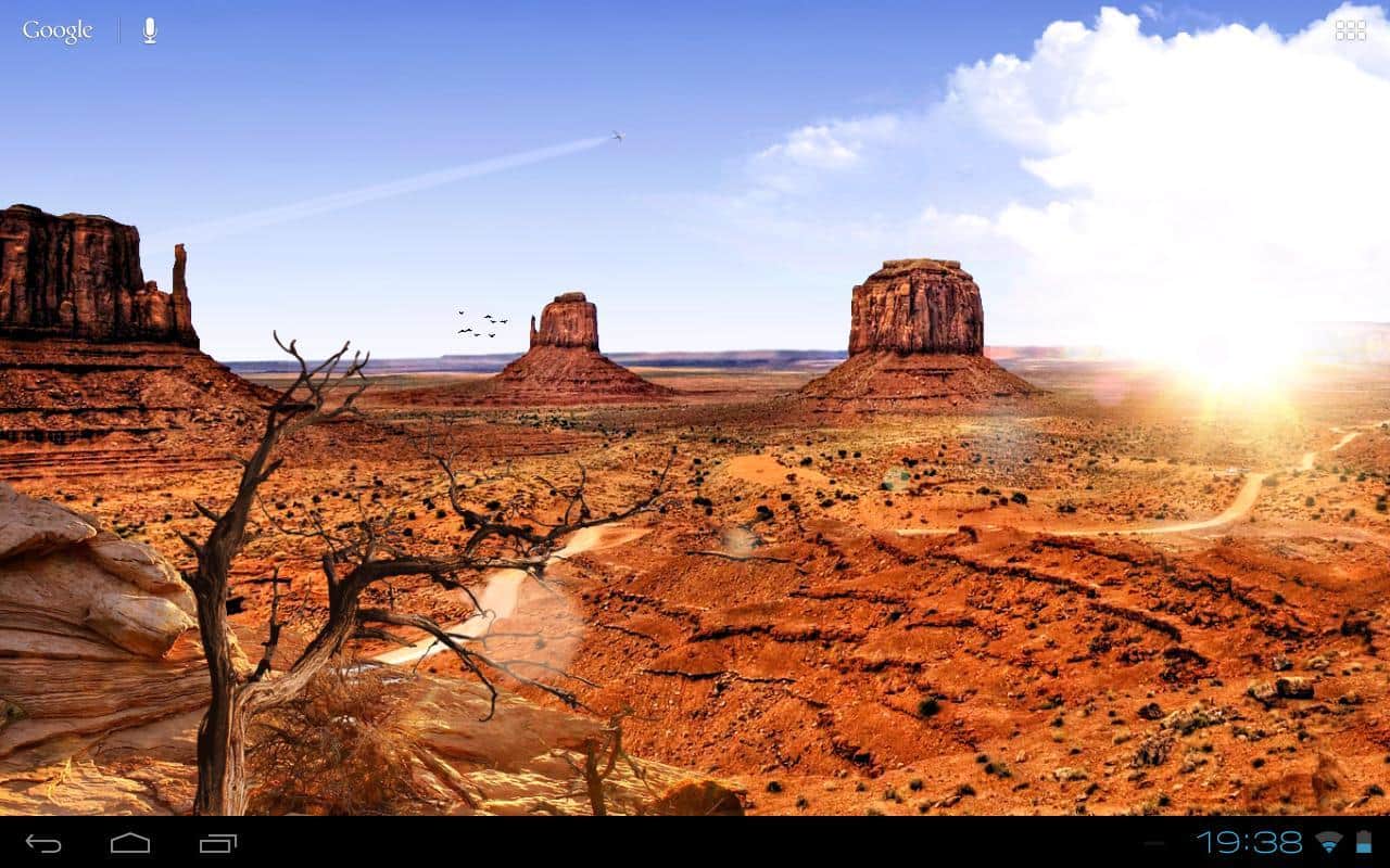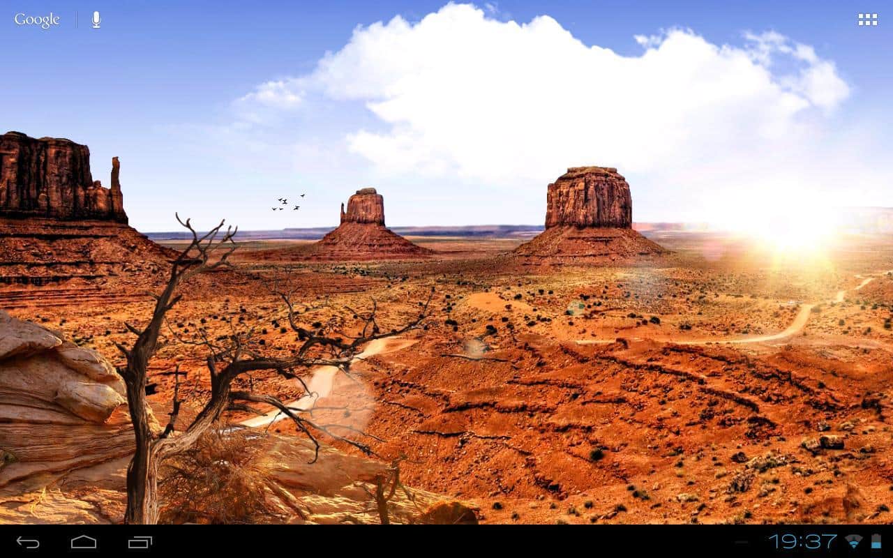 Büyük Kanyon Canlı Duvar Kağıdı - Android için muhteşem bir manzaraya sahip olan harika duvar kağıtları. Bu şık duvar kağıtlarını akıllı telefonunuzun ekranına yükleyin ve kanyonlu sıcak çöl manzarası size bir western havası verecek. Kendinizi bir kovboy gibi hissedin! Animasyonda sadece gökyüzünde süzülen bulutlar var!