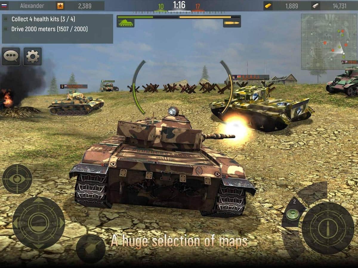 Büyük Tanklar: Tank Nişancı Oyunu – çeşitli haritalarda gerçekleşen tank savaşlarına katılın. Bu oyunda farklı dönemlerden ve üreticilerden tankları kontrol altına alacak ve onları sınayacaksınız. Zırhlı aracı yönetin ve onu ileriye doğru sürerek karşısına çıkan tüm düşmanları yok edin. Haritaya dikkatlice bakın ve düşmanınızı takip edin, ona ateş açan ilk kişi olun. Rakip tanklara ateş edin ve en savunmasız noktalara isabet etmeye çalışın. Yeni tankların kilidini açın, değerli ödüller ve unvanlar kazanın ve diğer oyuncular ve müttefiklerle genel sohbet odasında iletişim kurun.
