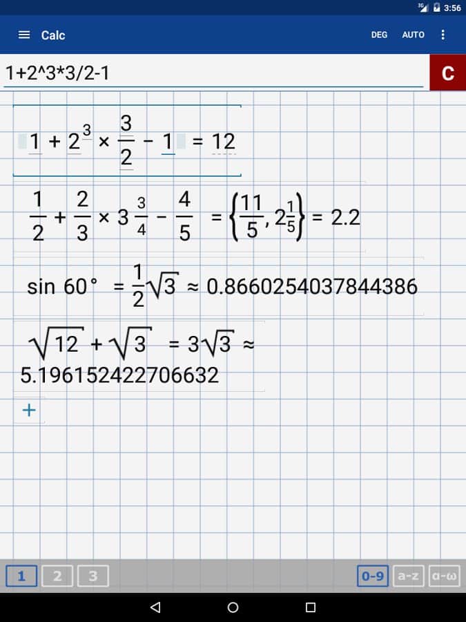 - Kesirler 1/2 + 1/3 = 5/6, karışık değerleri girmek için boşluk kullanımı, örneğin 3 1/2