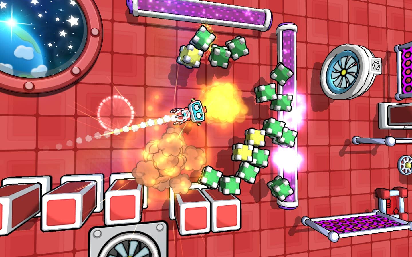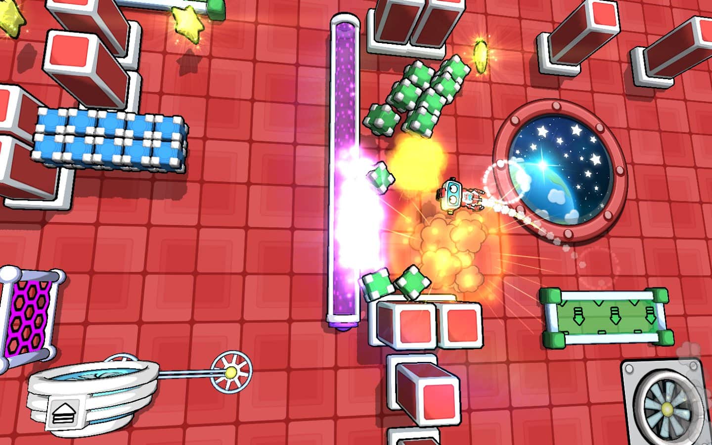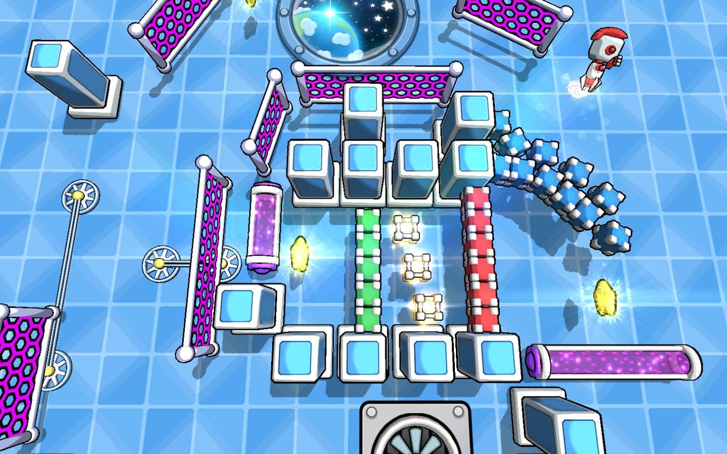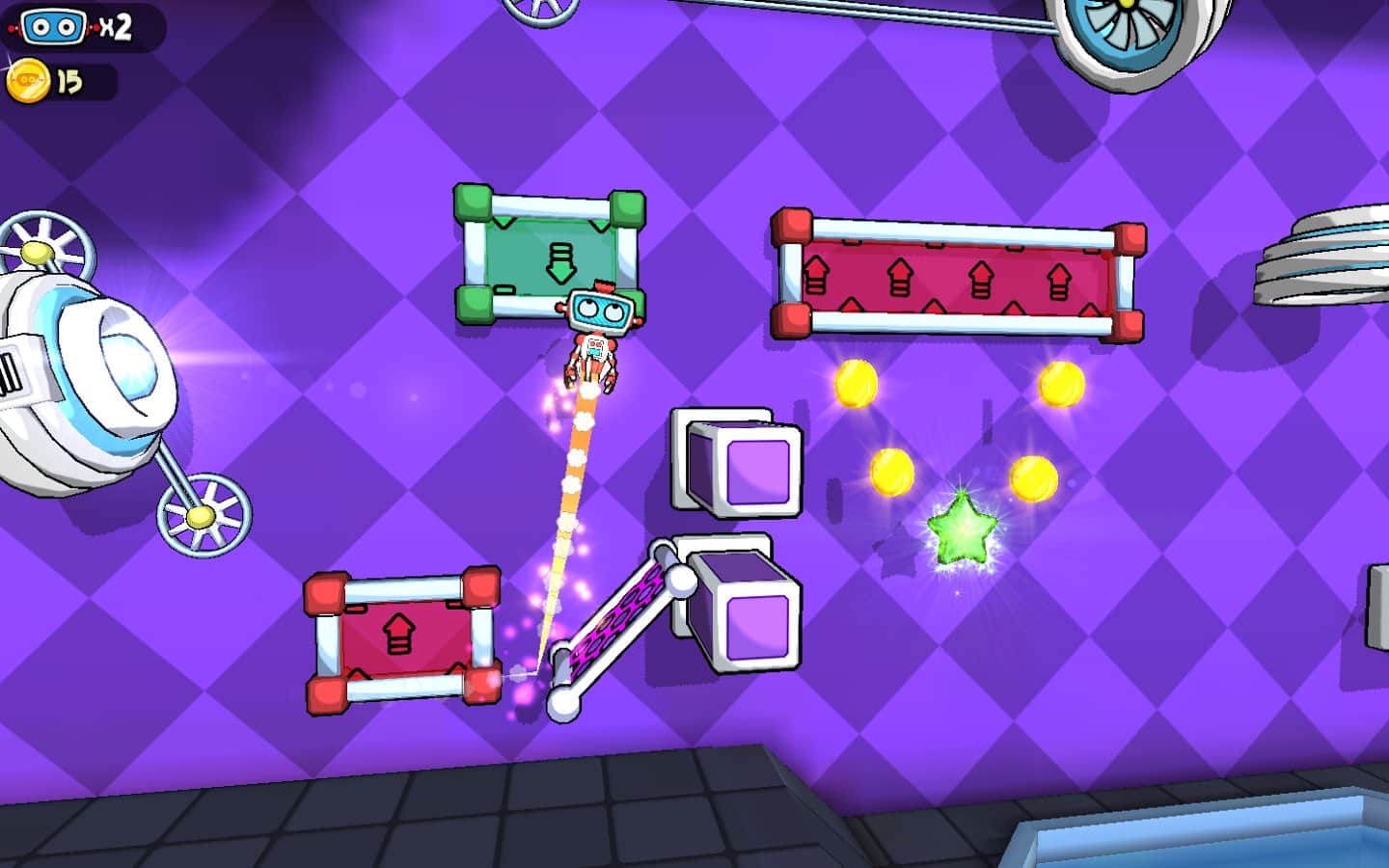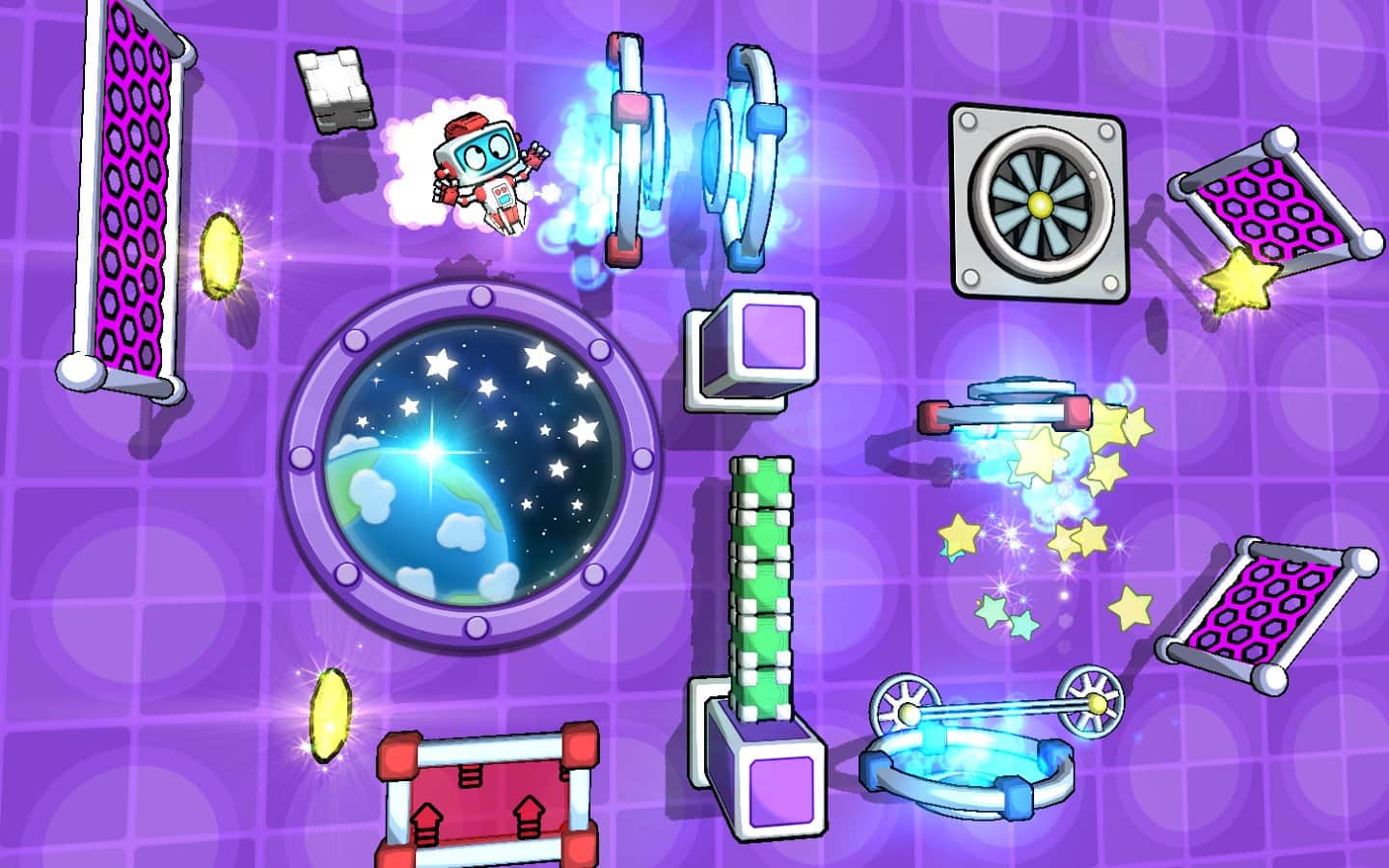 Gravitasyon Laboratuvarı! - Android için bir bulmaca oyunu, burada bir topu fırlatıcı ile fırlatarak robotun çeşitli engelleri aşmasını sağlamalısınız. Oyun, robotu fırlatırken tüm yıldızları toplamanız ve 200'den fazla yeni seviyeyi açmanız gereken fizik yasalarına dayanmaktadır. Robotunuzu, platformlardan zıplayarak, portalardan geçerek ve toplardan fırlayarak uçacak şekilde fırlatın; amacınıza ulaşmak için yolunuzdaki her şeyi kullanın.