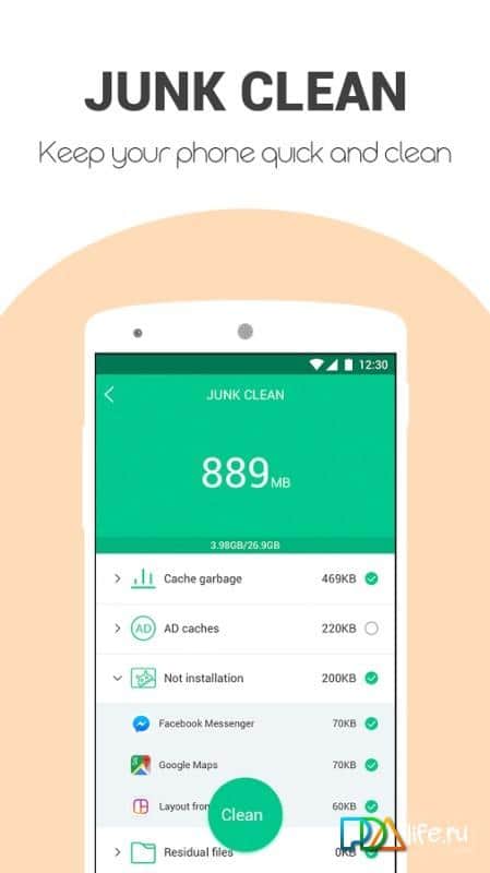 Yeşil Temizlik - Akıllı telefon temizleme uygulamaları çoktur ve bu uygulama da oldukça standart özelliklere sahiptir. Bu uygulama ile cihazınızın belleğini ve RAM'ini temizleyebilirsiniz. Bunu yapmak zor olmayacak çünkü kullanıcı dostu arayüz, her şeyi tek dokunuşla temizlemeyi sağlar. Ancak neyi silmek istediğinizi seçmek isterseniz, hangi öğeleri bırakacağınızı ve hangilerini sileceğinizi seçebileceğiniz bir liste sunulacaktır.