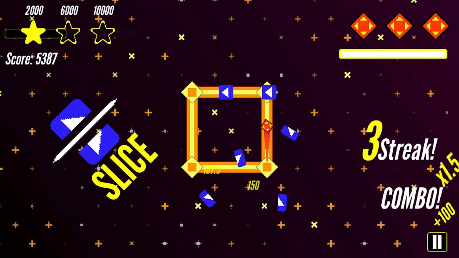 - Slice Modu - oyunun ana modu. Blokları kesin, mayalardan kaçının ve rekorlara ulaşmaya çalışın. Seriler ve kombinasyonlar oluşturarak puanınızı artırın ve dinamik sürecin tadını çıkarın.
