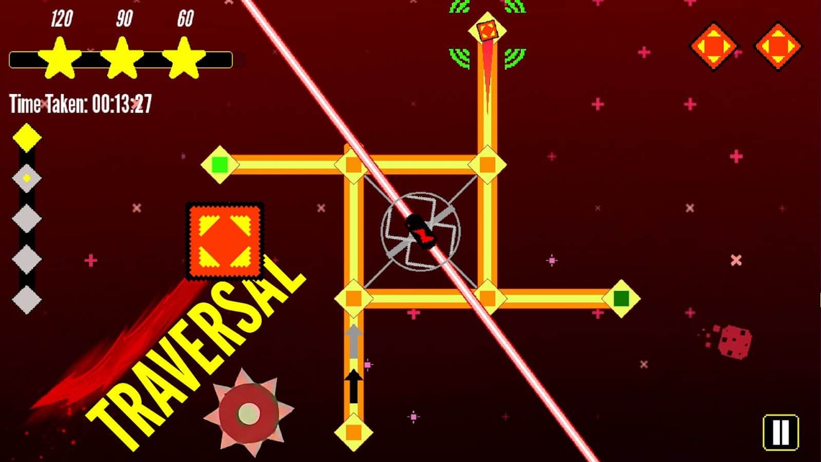 - Geçiş Modu - hassasiyet ve hız üzerine bir oyun. Tehlikeli tuzaklar, mayalar ve lazerlerle dolu seviyeleri aşarak, dilimleyicinizi güvende tutarak mümkün olan en hızlı şekilde finish çizgisine ulaşın.