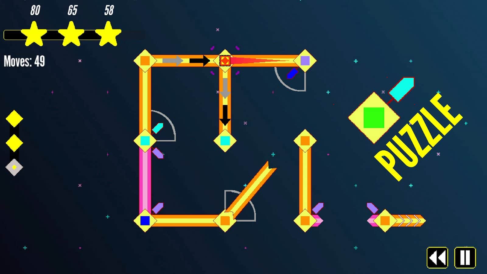 - Bulmaca Modu - ilerlemek için strateji ve dikkat kullanın. Anahtarları aktif hale getirin, köprüler inşa edin ve karmaşık ağları en az hamlede geçin.