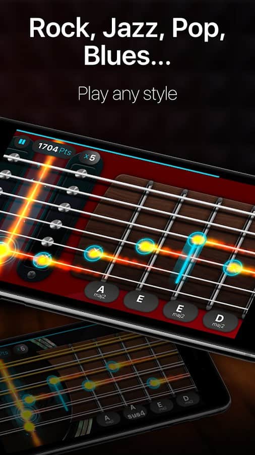 Gitar - müzik oyunları, profesyonel notalar ve akorlar çal! - bu oyun, sadece gitar çalma prensibini anlamanızı sağlamakla kalmayacak, aynı zamanda uygulama içinde kendi müziğinizi yaratma fırsatı da verecektir. Farklı zorluk seviyeleri ve birçok seviye, ya da serbest oyun modu sizin tercihiniz.