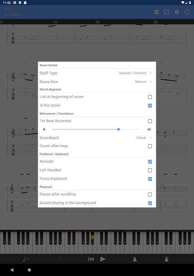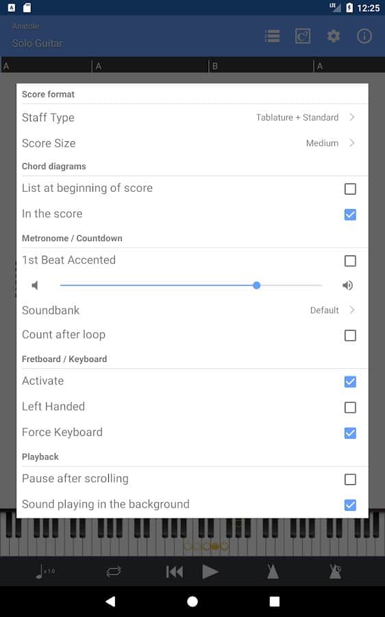 Android cihazlar için Guitar Pro - hayaller gerçek oluyor! Bu program, hem gitar çalmaya yeni başlayanlar hem de sevdiği şarkıları her zaman ve her yerde pratik yapmak isteyen deneyimli gitaristler için mükemmel bir seçenek! Tüm gitaristlerin kendi tablarını çalma imkanı ve daha fazlası var. Bu uygulama, Android için PC'deki ünlü Guitar Pro programının harika bir alternatifi.