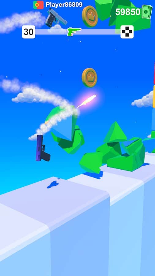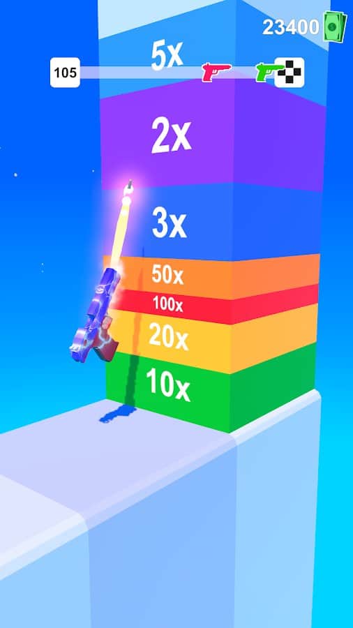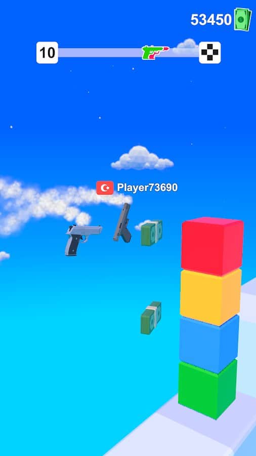 Silah Yarışı - "koşucu" türünde bağımlılık yapan bir oyun. Bir tabanca olarak finish'e ulaşmalıyız, yol boyunca çok para toplayarak. Paralarla en farklı tabancaları satın alabiliriz. Bize büyük duvarlar engel olacak. Sonunda bonuslarla dolu bir duvar var. Ne kadar iyi bir atış seçerseniz, o kadar çok para kazanırsınız. Haydi, ileriye ateş etmeye!