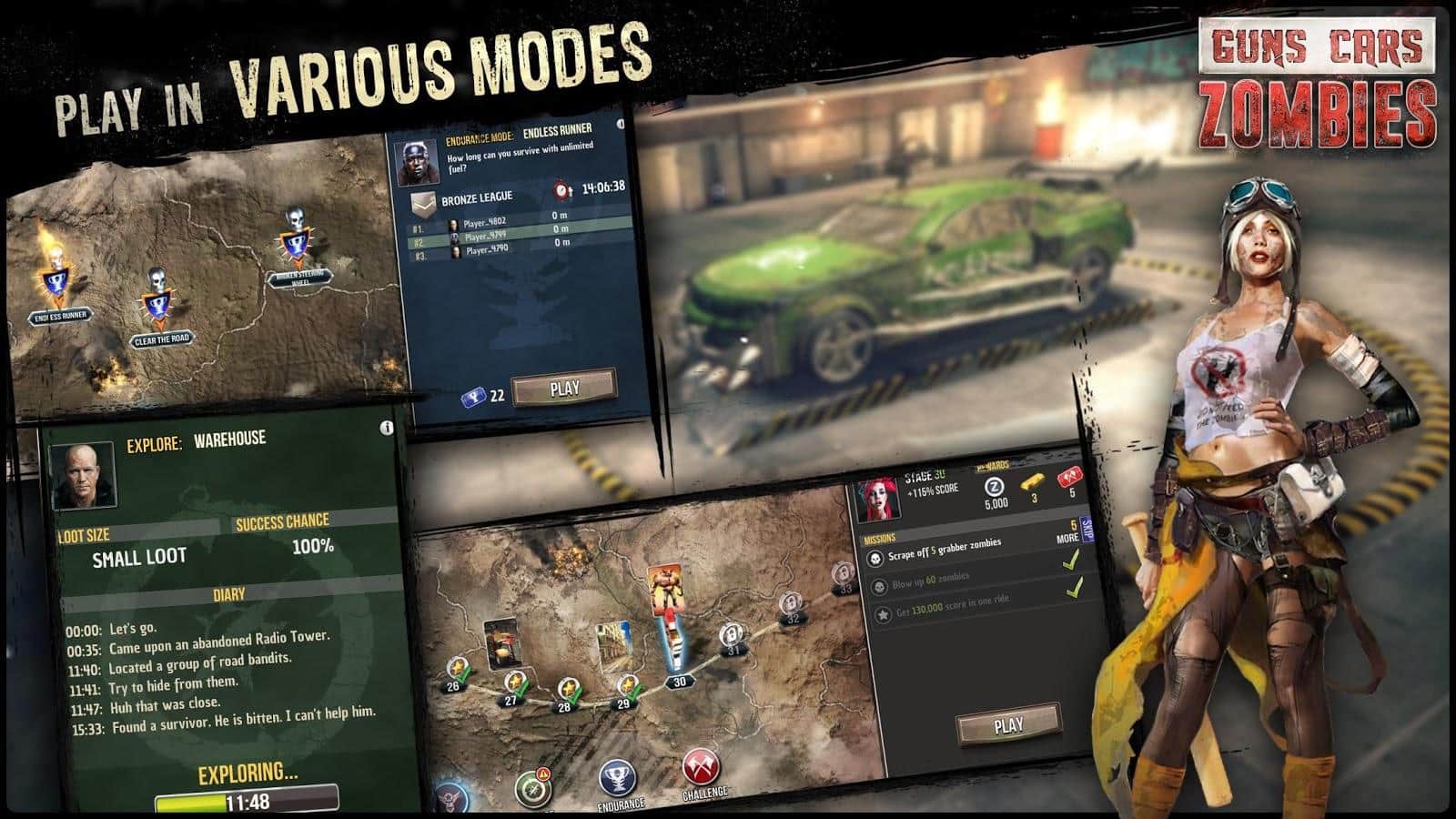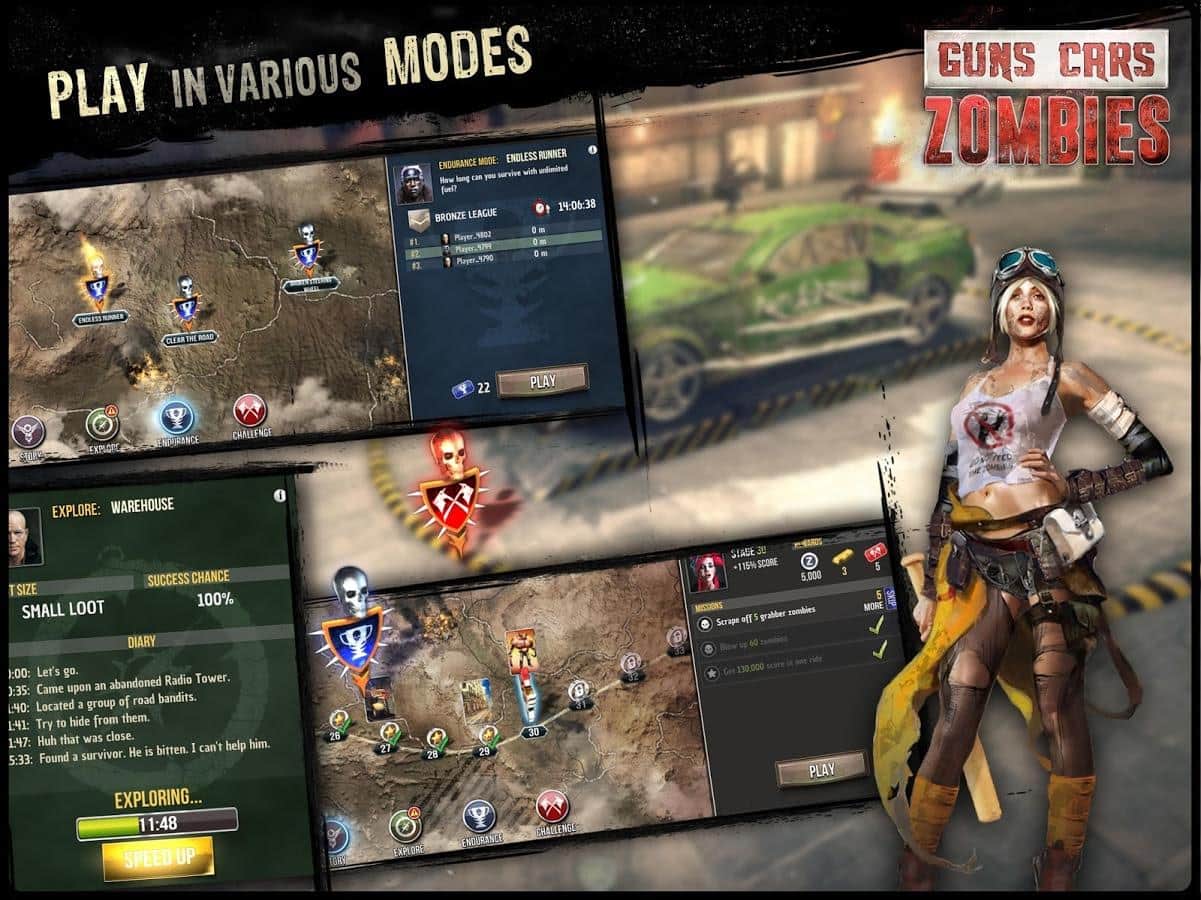 Silahlar, Arabalar, Zombiler - Silahlar, arabalar, zombiler ve bunların hepsi büyük miktarda! Yürüyen ölülerle meydan okuyun. Oyunda, kıyamet sonrası dünyada zorlu bir işe hazırlanmış özel araçlarla yarışacaksınız. Aracınız - sizin kalesiniz - bu ifade oldukça yerinde olacaktır. Eğer bir sebepten dolayı bunu başaramazsanız, uzun süre hayatta kalamazsınız. Oyunda 5 farklı arabada geçebileceğiniz 150'den fazla görev bulunuyor ve bunlara ek olarak 150'den fazla çeşitli ek parçalar satın alabilirsiniz ve bu silahları saymaz. 4 oyun modu sizi sıkılmaktan alıkoyacaktır.