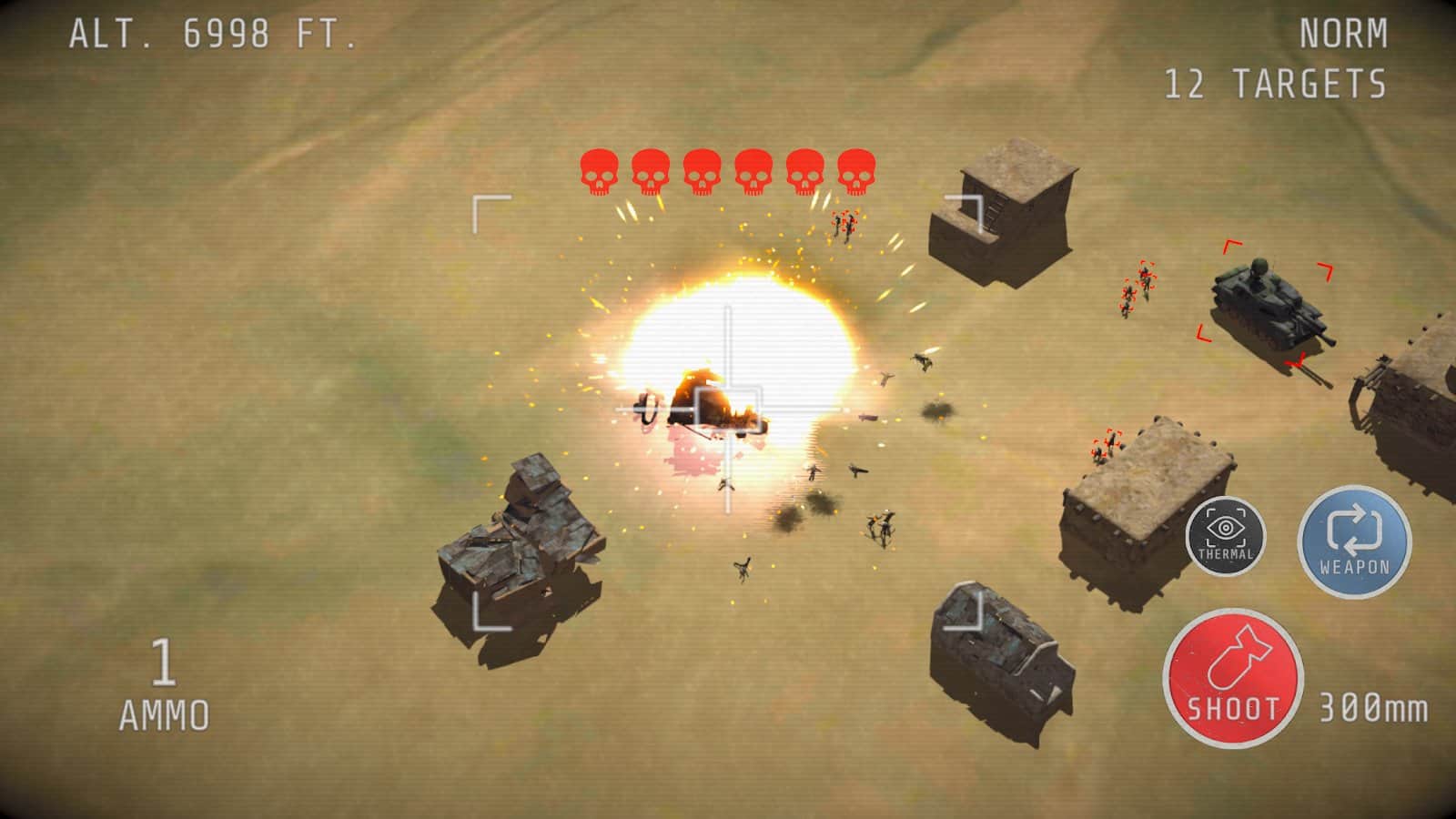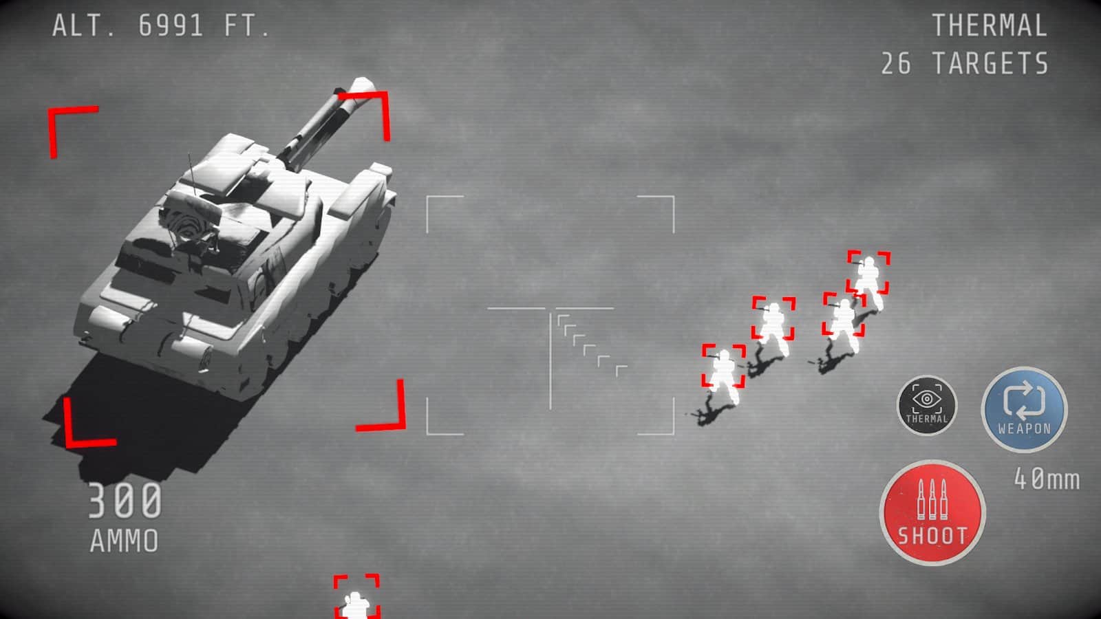 Gunship Operator 3D - oyuncuların savaş alanının üzerinde bir uçakta bulunan yerleşik topçu operatörü rolünü üstlendiği heyecan verici bir nişancı oyunudur. Katılımcılara çeşitli kalibreler ve mermi türleri sunulmakta, bu da yerdeki hedefleri başarılı bir şekilde vurmayı sağlamaktadır. Piyadeden zırhlı araçlara ve güçlendirilmiş binalara kadar. En önemli nokta, bunlar arasında zamanında geçiş yapmak, yörüngeleri doğru değerlendirmek, mermileri israf etmemek ve dinlenme anlarında tüm yapıyı modernize etmektir. Böylece herhangi bir fedakarlık veya taviz vermeden daha fazla imkan elde edersiniz. Gunship Operator 3D' de sizi aksiyon dolu ve dinamik çatışmalarla dolu bir macera bekliyor!