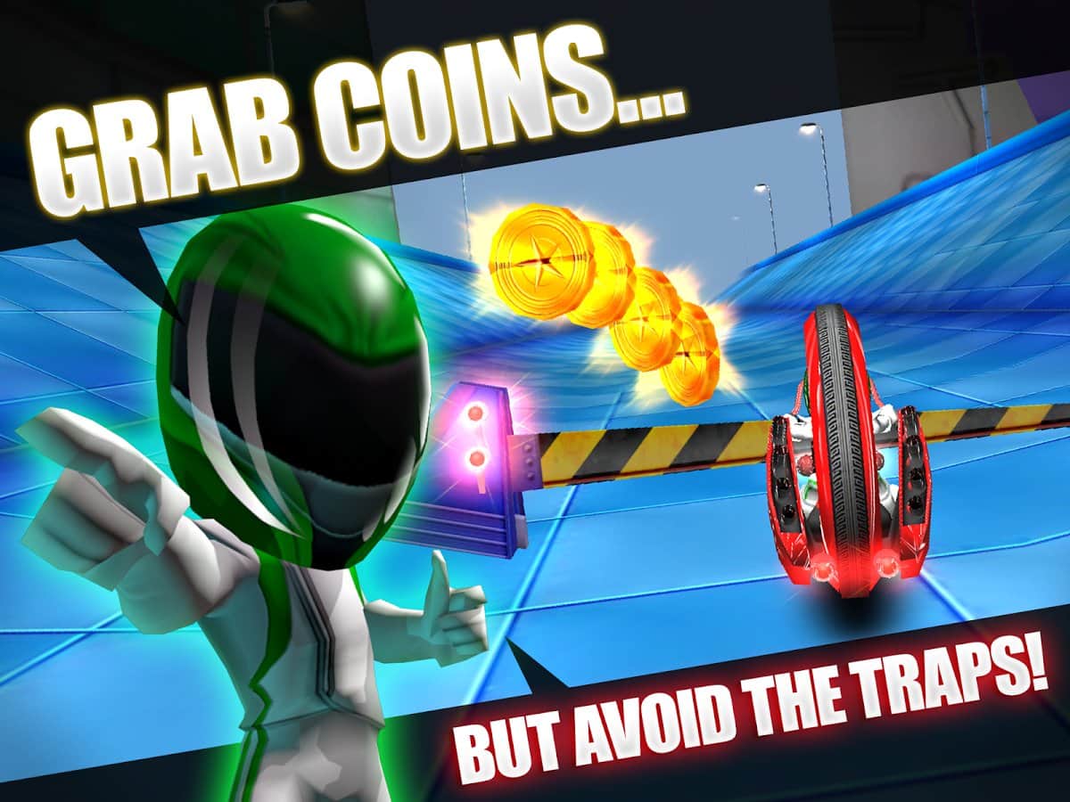 GyroBoy 3D - Android için muhteşem yarışlar, sizi geleceğe götürüyor, yarışların maksimum hızlara ulaştığı ve taşıtların daha aşırı hale geldiği bir zamanda. Şimdi sırada tek büyük tekerlekli motosikletlerle yarışlar var. Sizi birçok iniş, çıkış, rampalar ve bariyerlerle dolu dinamik yarışlar bekliyor. Ayrıca, parkur boyunca paraları toplamayı unutmayın. Bu, size yeni motosikletler satın alma imkanı verecek.