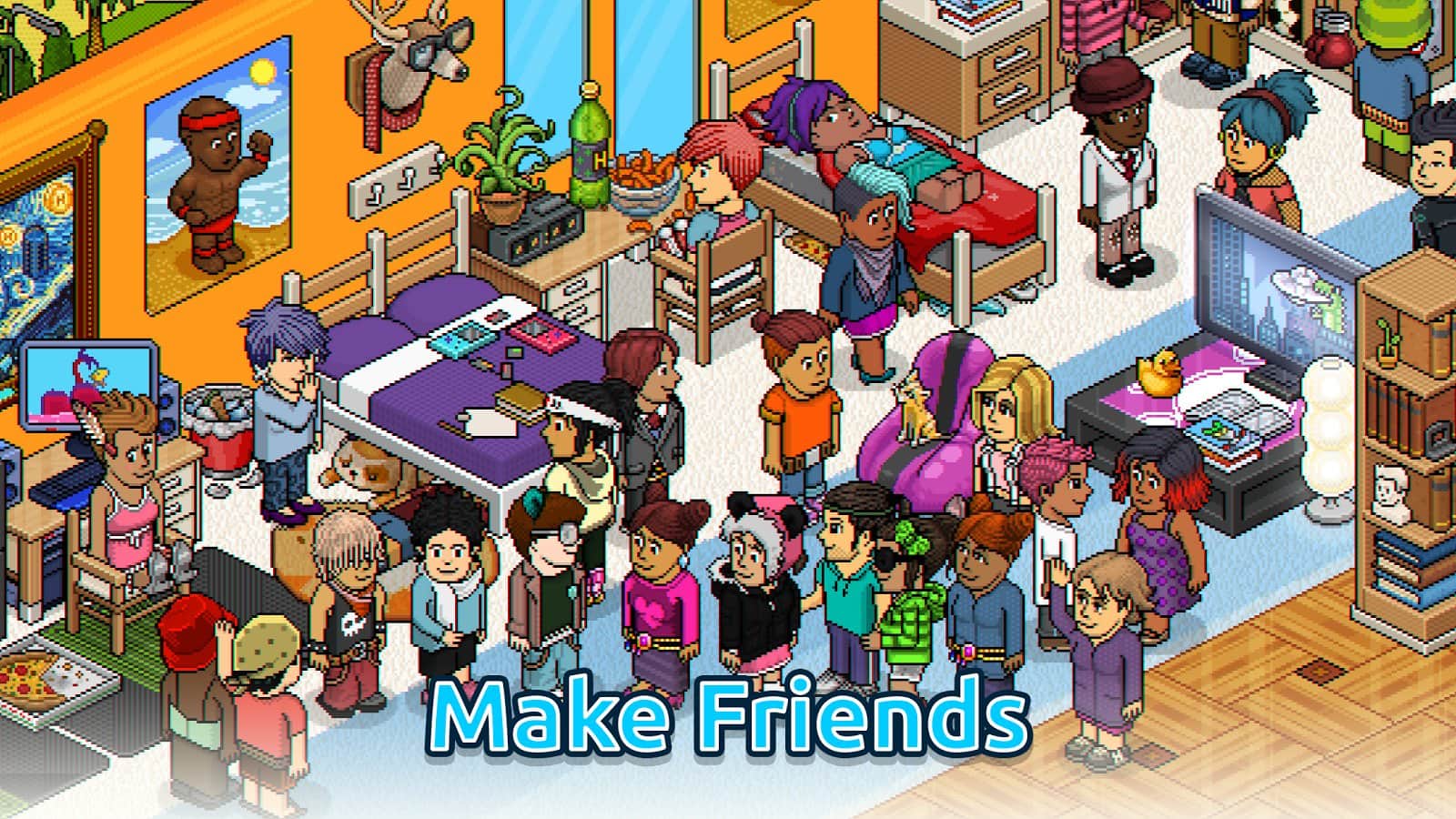 Ancak Habbo'nun ana odak noktası, oyuncular arasındaki iletişimdir; on milyonlarca katılımcı bu kuruluşun sürekli ziyaretçileri olarak kayıtlıdır. Tanışın, tartışın ve dünyanın en güzel otelinde eğlenceli zaman geçirin.