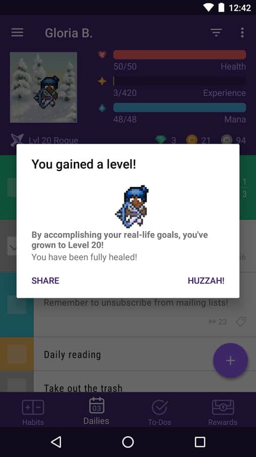 Bazen kendinizi bir şeyler yapmaya zorlamak çok zor olabilir. Habitica uygulaması, kendinizi herhangi bir şey için basit bir oyun biçiminde motive etmek amacıyla oluşturulmuştur: spor salonuna kaydolmak, İspanyolca öğrenmek veya sağlıklı beslenmeye başlamak.