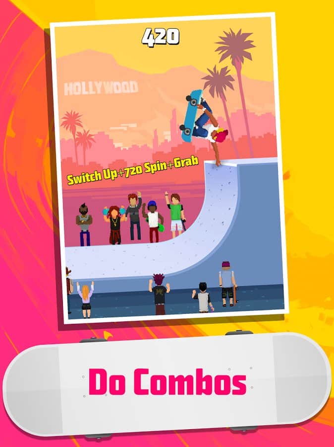 Halfpipe Kahramanı - hoş bir retro tarzda tasarlanmış dinamik bir spor arcade oyunu, piksel grafiği ile bir araya getirilmiş, parlak ve renkli renklerle oluşturulmuş ve elbette herkesin bildiği müzik tarzı ile. Oyun, kendi çalma listelerinizi kullanmanıza olanak tanımasıyla dikkat çekiyor. Tüm bunlar, Halfpipe Kahramanı'na hoş bir atmosfer kazandırıyor, rahatlamanıza ve oyun deneyiminin tadını çıkarmanıza olanak tanıyor. Şimdi buna da değinelim. Halfpipe Kahramanı'nın belirgin arcade yapısına rağmen, geliştiriciler basit kontroller ile her türlü hareket ve numara çeşitliliğini oldukça uyumlu bir şekilde birleştirmişlerdir; bunları birleştirip kendi zincirlerinizi oluşturabilirsiniz. Elbette bir geliştirme sistemi de mevcut; karakterler ve yeni mekanlar, oyunu ilerledikçe size açılacak. Arkadaşlarınızla rekabet etme imkanı da bulunmaktadır.