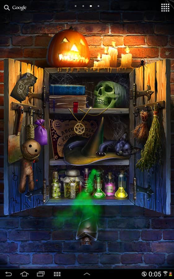 Cadılar Bayramı Canlı Duvar Kağıdı – bu canlı duvar kağıtlarıyla Cadılar Bayramı ruhunu hissedin. Bu duvar kağıtlarında, cadının büyü kitaplarını, iksirlerini, voodoo kuklalarını ve diğer sihirli nesnelerini sakladığı gizemli dolaba bir göz atabilirsiniz. Bu duvar kağıtları sayesinde kara büyünün perdesini aralayabilir ve cadının tüm sırlarını ortaya çıkarabilirsiniz. Tüm eşyalarını telefonunuzda görüntüleyin ve günlük yaşamınıza biraz sihir katın. Cadılar Bayramı'nı seviyorsanız, bu duvar kağıtları tam size göre. Ayarlara gidin ve istediğiniz gibi farklı efektler ayarlayın.