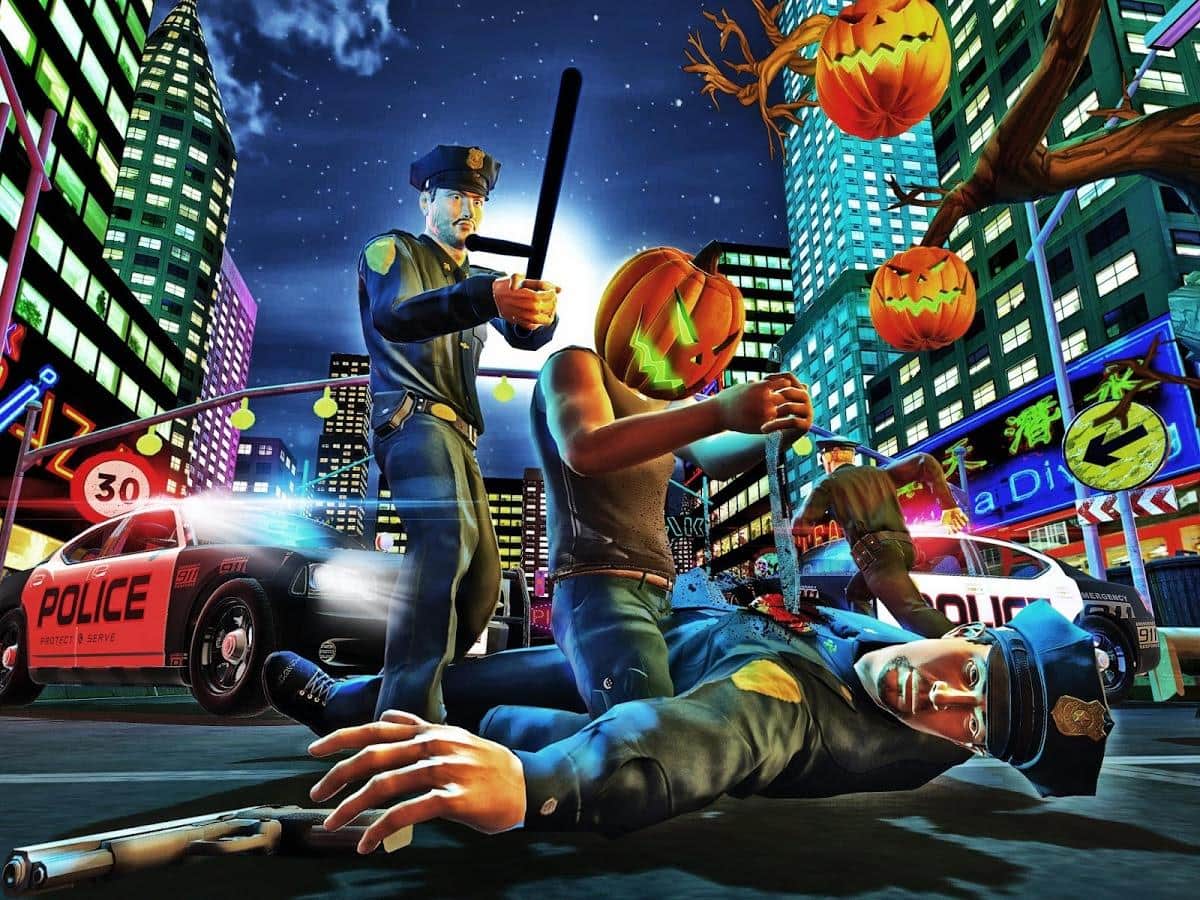 Cadılar Bayramı Soygunu Suç Şehri – Cadılar Bayramı gecesi şehrinize yıkım ve kaos getirin. Bu oyunda yerel bir çetenin lideri olarak hareket edecek ve etrafı yerle bir edeceksiniz. Şehrin hareketli sokaklarında dolaşın ve yoldan geçenlere ve diğer çetelere saldırarak onları soygun yapın ve onlara geri dönüşü olmayan zararlar verin. Şehrin tüm sokaklarını kontrol altına alın ve polisle ve mafyayla ölümcül bir çatışmaya girin. Beğendiğiniz araçları çalın, dükkanları ve bankaları soyun, ayrıca yerel zenginlerin hedefli suikastlarını gerçekleştirin. Savaşta modern silahlar kullanın, örneğin: makineli tüfekler, keskin nişancı ve saldırı tüfekleri ile tabancalar. Belirlenen görevleri tamamlayın ve şehirde harika ödüller ve güç kazanın.