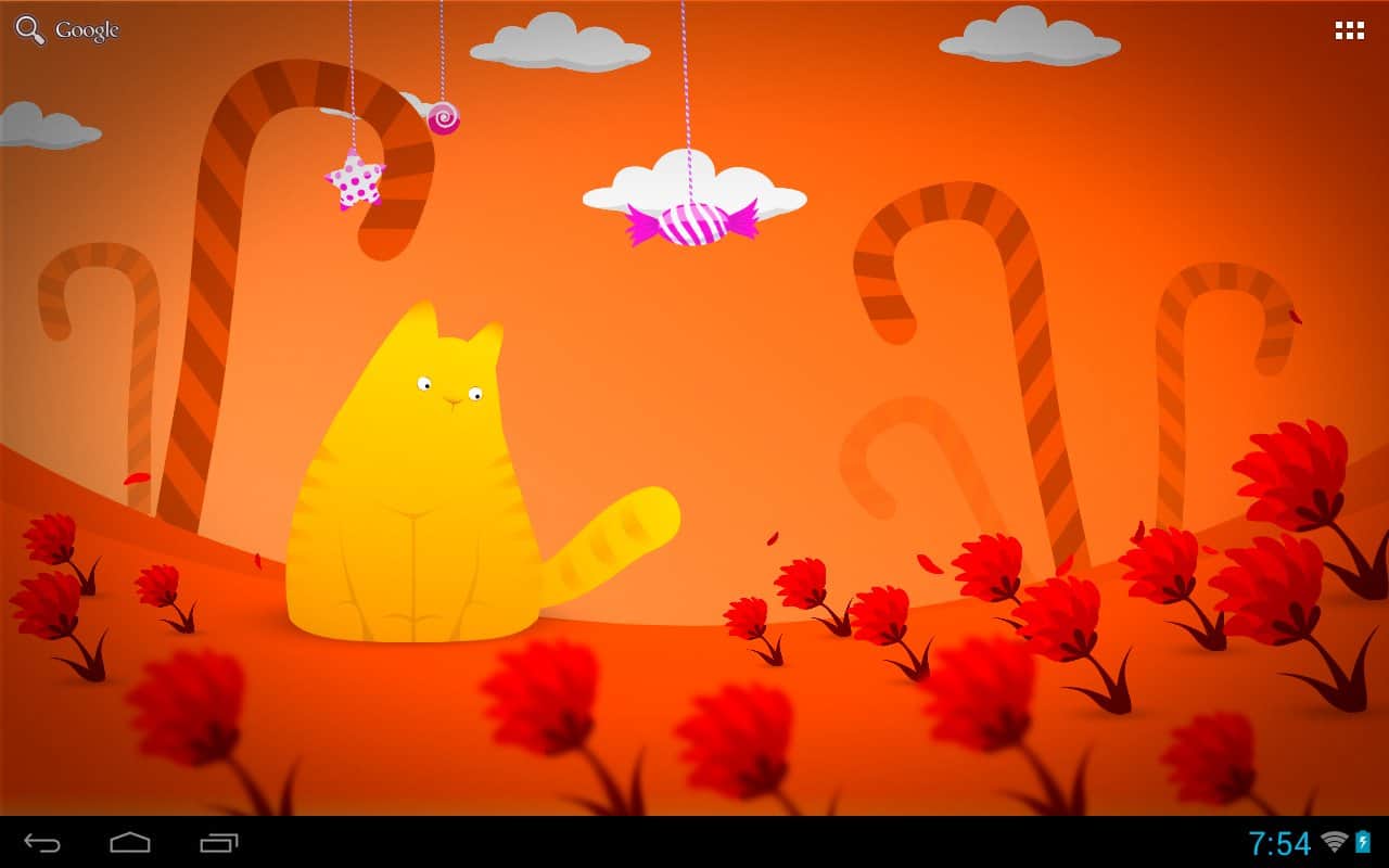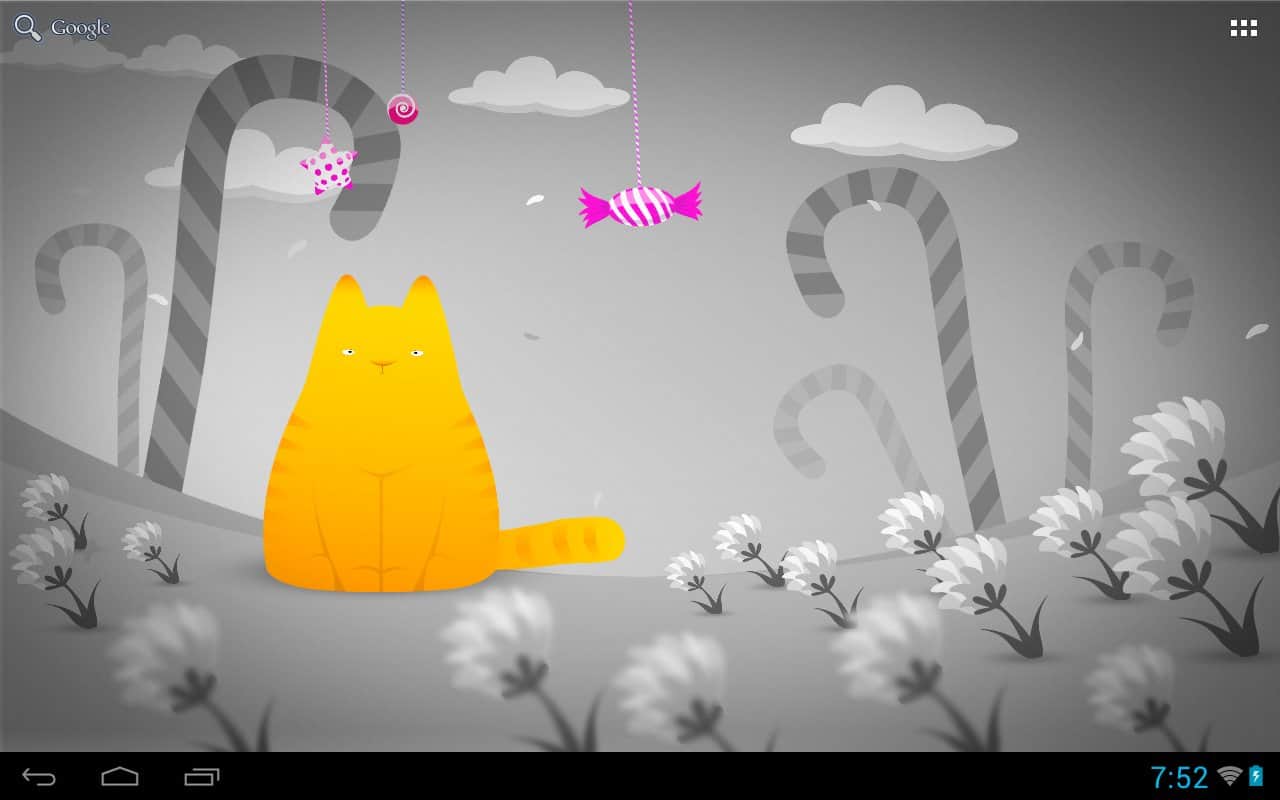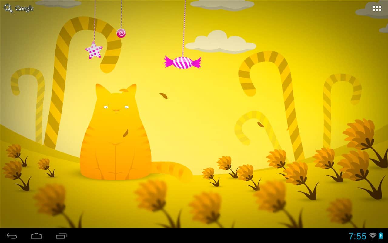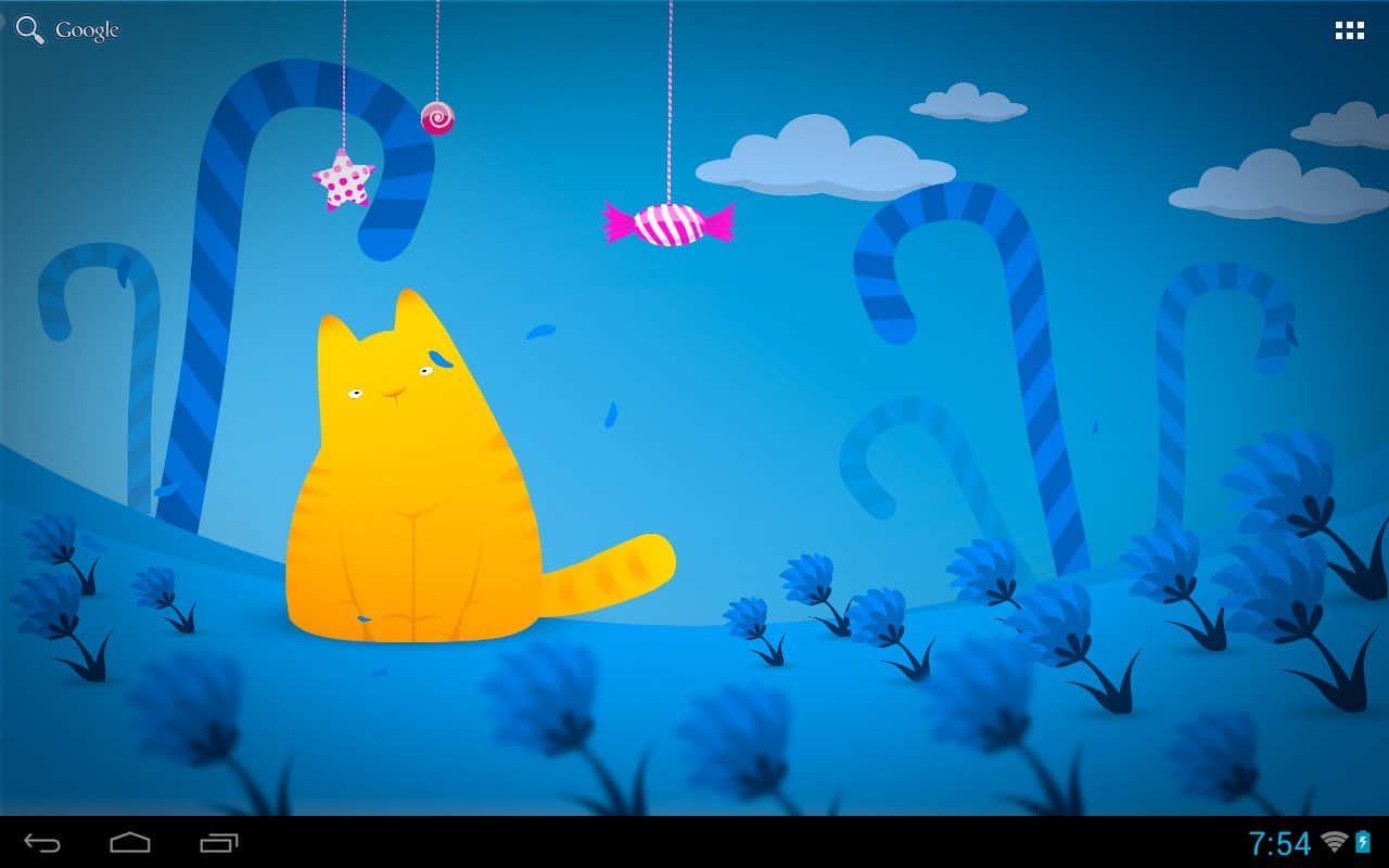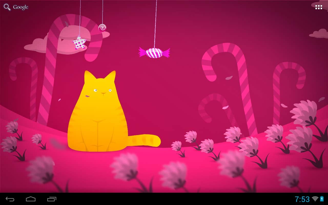 Hamlet kedisi LWP – büyüleyici kedisi Hamlet canlı duvar kağıdında, çizgi film şeker ülkesinde yaşıyor, yalnız kalmaması için bu duvar kağıdını cihazınızın ekranına kurun – dokunuşlarınıza tepki verecek, başının üstünde asılı şekerlere bakacak, gece olunca uyuyacak ve rüyalar görecek. Sevimli, parlak ve güzel.